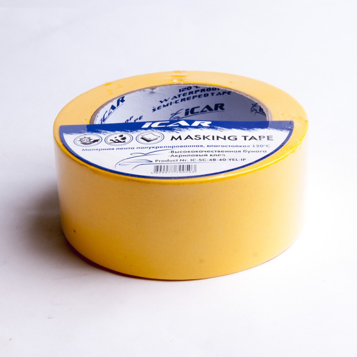 Малярная бумажная клейкая лента IP ICAR Semicrepped 120С ( t=120°C) - специально разработана в качестве маскировочного материала, при проведении малярных работ, в том числе и для работы с водорастворимыми лакокрасочными материалами.