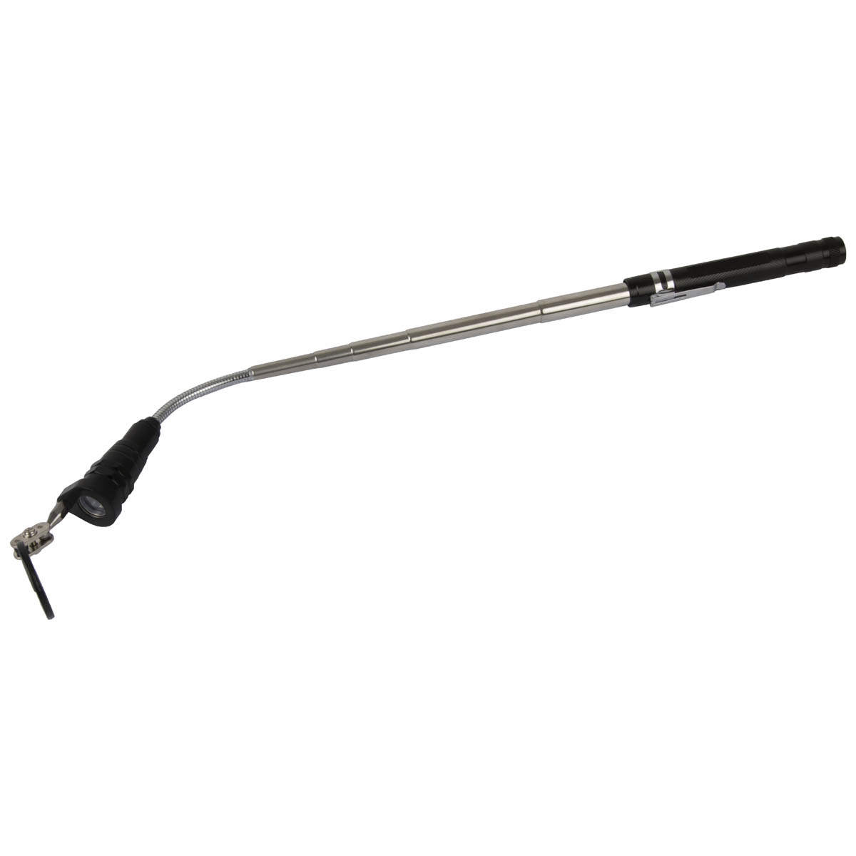 Фонарик на гибкой рукоятке с зеркалом и магнитным захватом — незаменимый прибор в любом автосервисе. Инструмент является практичным и невероятно удобным. С его помощью можно достать небольшую деталь, даже из самого труднодоступного места. Зеркало и встроенная подсветка позволяют видеть те узлы, которые с помощью обычного фонарика не увидеть.