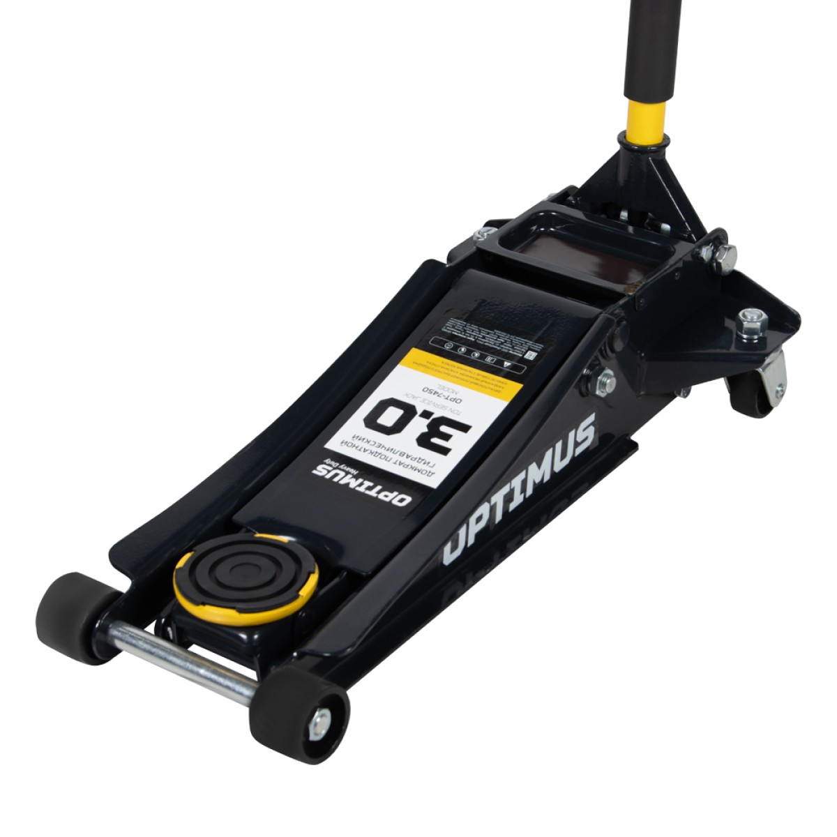 Гидравлический подкатной домкрат OPTIMUS OPT-7550 грузоподъемностью 3000 кг. Высокопрочная стальная рама с защитой от коррозии обеспечивает долгий срок службы, а магнитный лоток для хранения колёсных гаек делает процесс работы более удобным. Наличие двух усиленных гидроцилиндров и надежного карданного механизма обеспечивает безопасный, быстрый и плавный подъём и спуск автомобиля. Износостойкие усовершенствованные механизмы позволяют использовать домкрат в профессиональной сфере с высокой интенсивностью эксплуатации. Противоударное покрытие рычага и резиновая накладка опорной площадки предотвратят повреждения автомобиля. Широкие износостойкие колеса увеличенного размера позволяют легко перемещать устройство по неровным поверхностям и подкатывать его непосредственно под кузов транспортного средства.
