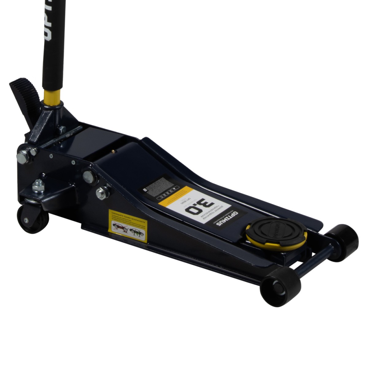 Гидравлический подкатной домкрат c ножной педалью OPTIMUS OPT-8090 грузоподъемностью 3000 кг. Применяется для профессионального использования в шиномонтажных мастерских. Благодаря увеличенным колесам устройство быстро и легко перемещается. Он имеет низкопрофильную конструкцию, что позволяет использовать его для работы с автомобилями с низкой посадкой. Двухштоковый механизм обеспечивает быстрый подъем груза, так как домкрат оснащен системой быстрого подъема рабочей части Quick Lift. Надёжный карданный механизм привода обеспечивает точное управление нагрузкой в любом положении ручки. Ручка управления располагается в мягкой трубке, для предотвращения случайного повреждения автомобиля. Корпус домкрата выполнен из металла, что обеспечивает его прочность и долговечность.