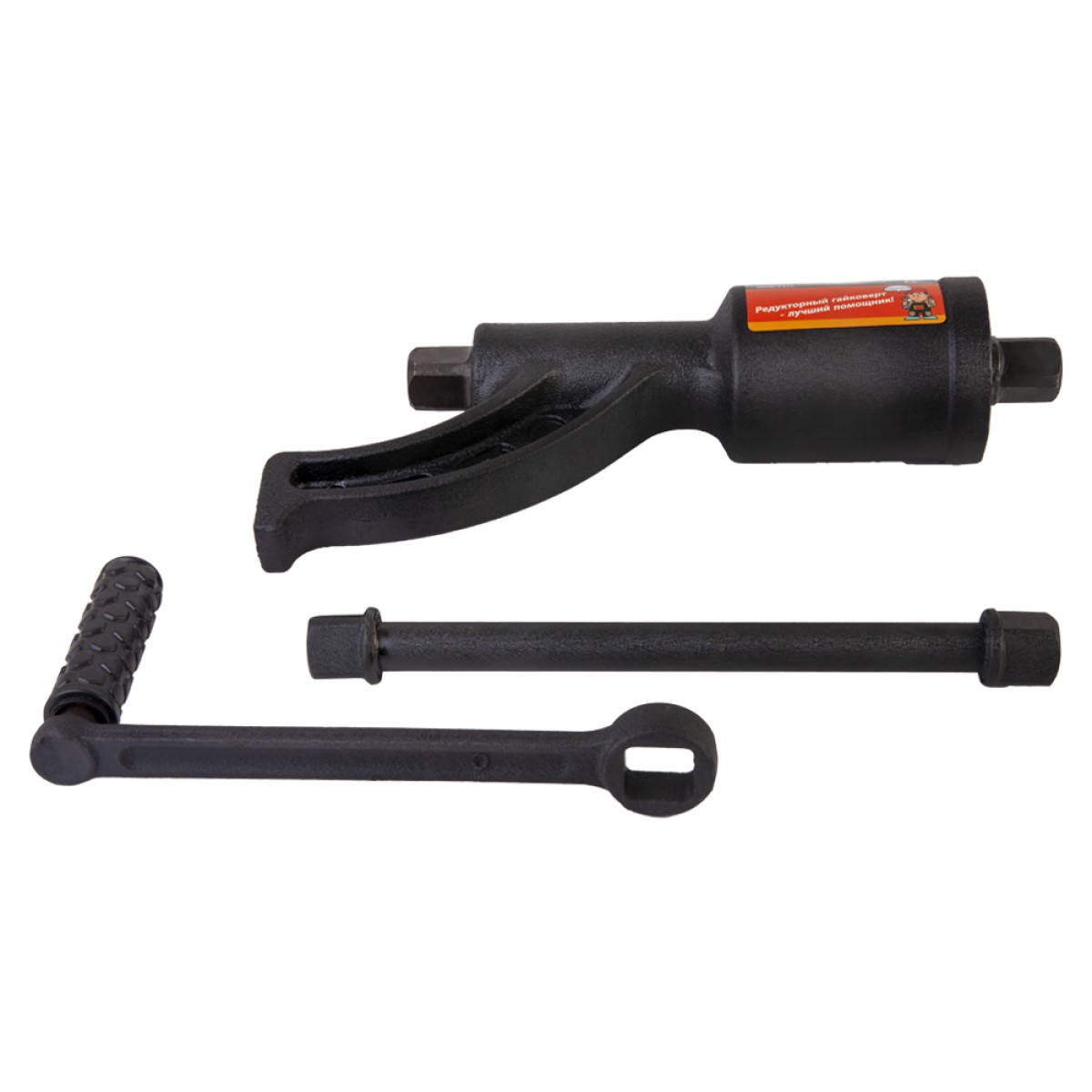 Удлиненный ручной редукторный гайковерт WiederKraft WDK-737L с приводным квадратом 1″ и максимальным усилием 4800 Нм. Гайковерт предназначен для монтажа и демонтажа колёсных гаек грузовых автомобилей и работ с крепежными соединениями, требующими повышенных усилий. Гайковёрты типа «мясорубка» изготавливаются высокопрочных материалов и отличаются высокой надежностью и продолжительным сроком службы. Усиление крутящего момента осуществляется за счет планетарного трёхступенчатого редуктора. Кольцевая шестерня каждой передачи является солнечной шестерней последующей передачи, тем самым достигается многократное увеличение крутящего момента. Механический редуктор увеличивает крутящий момент в 68 раз т.е приложив усилие в 1 кг к ручке, на головке гайковерта получается усилие до 68 кг. Удлиненная рукоять создает достаточный рычаг для максимально комфортной работы. Гайковерт оснащен специальным удлинителем, который увеличивает количество планетарных передач и зубьев, тем самым обеспечивая больший крутящий момент и облегчая работу. Этот простой в использовании инструмент подойдет как для профессионалов, так и для частного применения. Поставляется в надежном морозостойком и ударопрочном кейс, который обеспечит его удобное и безопасное хранение.