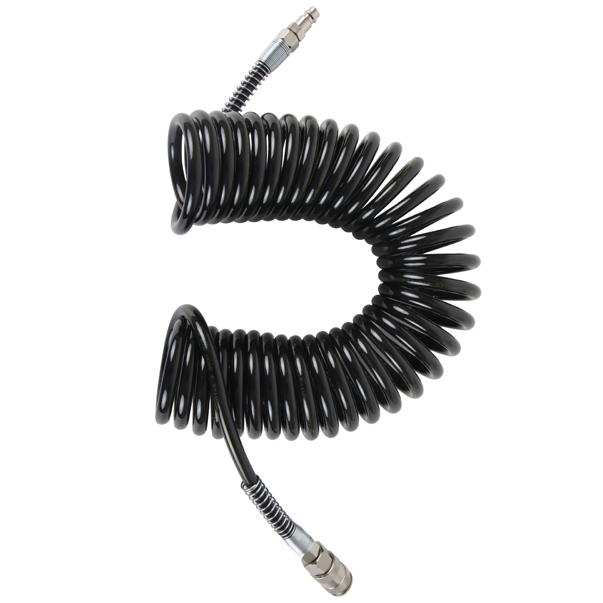 Шланг пневматический спиральный с БРС 8 м, 6.5х10 мм WDK-65758 служит удлинителем между компрессором и рабочим инструментом. Изготовлен из полиуретана, пружины защищают шланг от перегибов. Достаточная длина оснастки позволяет осуществлять работы на нужном расстоянии от компрессора. Шланг оснащен быстросъёмными фитингами рапид.