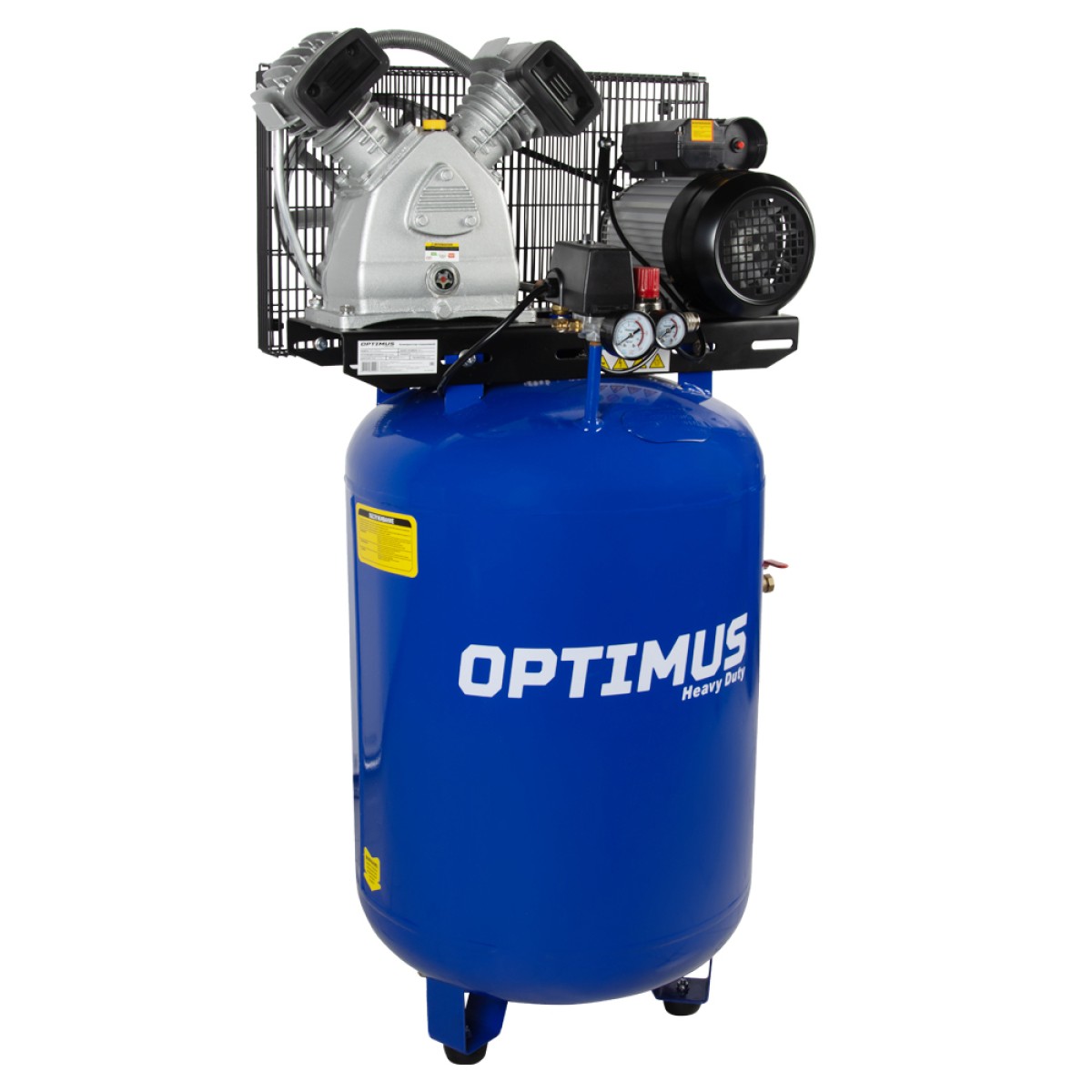 Масляный поршневой компрессор с ременным приводом и вертикальным расположением ресивера OPTIMUS OPT-301542A, который обеспечивает производительность 420 л/мин. Представляет собой мощный современный аппарат, который вырабатывает воздух со сжатием в 10 бар. Увеличенный ресивер объемом 150 литров обеспечивает продолжительную и эффективную работу. Вертикальная компоновка значительно экономит пространство, а резиновые опоры защищают от вибрации и заметно снижают уровень шума. Компрессор устанавливается на треногу, благодаря чему обеспечивается устойчивость аппарата во время работы. Благодаря наличию регулятора давления, при необходимости, можно легко и плавно менять величину давления подачи воздуха. Покрытие аппарата устойчиво к влиянию коррозии в течение всего срока службы. Контрольное окно картера позволяет оператору следить за уровнем и своевременно производить замену масла. Устройство оснащено воздушным фильтром, который очищает всасываемый воздух от пыли и других загрязнений. Модель широко используется с пистолетами для продувки, краскораспылителями, аэрографами, пневмостеплерами, пистолетами для подкачки шин. Основными преимуществами данного агрегата являются ременной привод, эффективное охлаждение, увеличенный ресивер на 150 литров и двигатель мощностью 2,2 кВт, обеспечивающий высокую производительность — 420 л/мин.