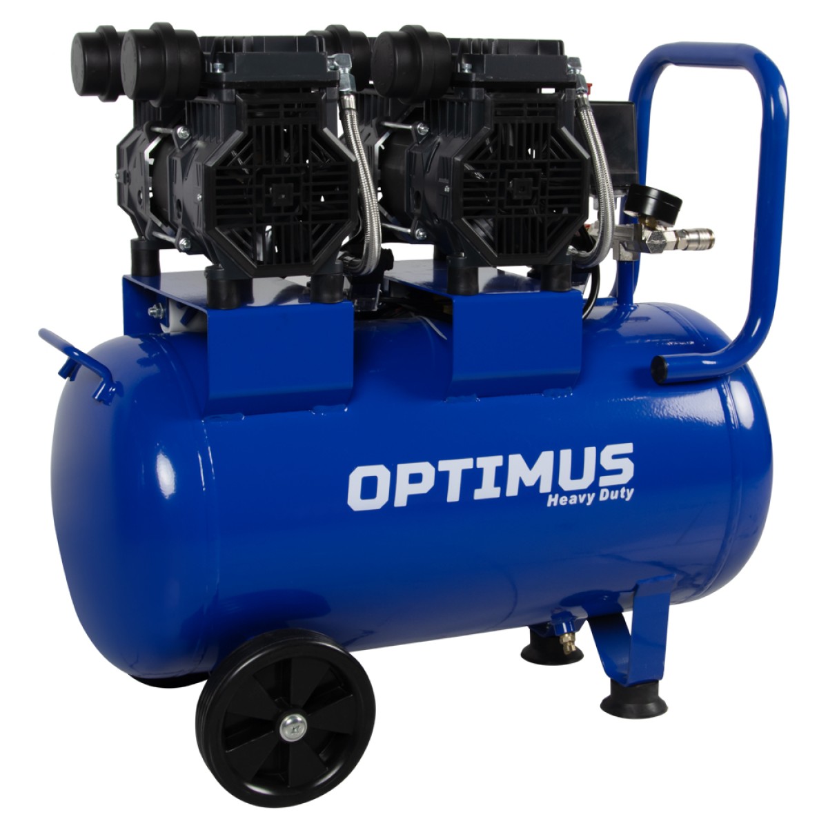 Безмасляный поршневой компрессор с ременным приводом OPTIMUS OPT-305044, который обеспечивает производительность 440 л/мин. Компрессор представляет собой мощный современный аппарат, который вырабатывает воздух со сжатием в 8 бар. Ресивер объемом 50 литров обеспечивает продолжительную и эффективную работу. Благодаря наличию регулятора давления, при необходимости, можно легко и плавно менять величину давления подачи воздуха. Одним из главных преимуществ данной модели является то, что для ее использования не требуется заливка масла. Это упрощает процесс эксплуатации и обслуживания. Защита электродвигателя от перегрузки обеспечивает его долговечность и надежность в работе. Компрессор оснащен двумя быстросъемными выходами, что позволяет подключать к нему сразу несколько инструментов. Два больших колеса и удобная высокая ручка гарантируют простоту перемещения агрегата в рабочей зоне. Опорные ножки на корпусе обеспечивают отличную устойчивость на поверхности, а так же поглощение вибраций при работе компрессора. В нижней части ресивера предусмотрен сливной клапан, позволяющий быстро избавиться от накопившегося за время работы агрегата конденсата. Устройство оснащено воздушным фильтром, который очищает всасываемый воздух от пыли и других загрязнений. Компрессор необходим для стабильной работы наиболее современного и чувствительного пневмооборудования — строительного, фармацевтического, медицинского, пищевого, химического. Также отлично подойдет подойдет для эксплуатации на небольших производственных площадках, в мастерских при выполнении покрасочных и авторемонтных работ. Основными преимуществами данного агрегата являются безмасляное исполнение, ременной привод, ресивер на 50 литров и двигатель мощностью 3 кВт, обеспечивающий высокую производительность — 440 л/мин.