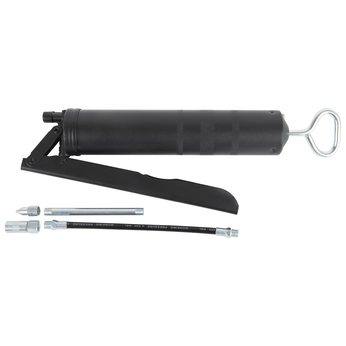 Шприц смазочный рычажно-плунжерный OPTIMUS OPT-405500 необходим для нагнетания смазки при проведении профилактических, ремонтных и обслуживающих работ. Шприц обладает рычажным механизмом с рукояткой, которая не скользит в руке во время работы. Благодаря наличию шланга, трубки и двух насадок, инструмент является универсальным.