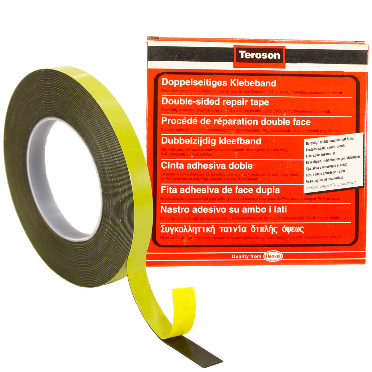 TEROSON VR 1000 — это пенополиэтиленовая лента, покрытая с обеих сторон акриловым клеем. Одна сторона покрыта полиэтиленовой пленкой, которая используется в качестве разделительного материала. Используется, в частности, для приклеивания и соединения защитных и декоративных деталей или эмблем и крепления встроенных пористых панелей из ПВХ или полиуретана. Лента характеризуется высокой устойчивостью к атмосферным воздействиям и ультрафиолетовому излучению. Рекомендуется подготовка поверхностей с использованием TEROSON VR 10.