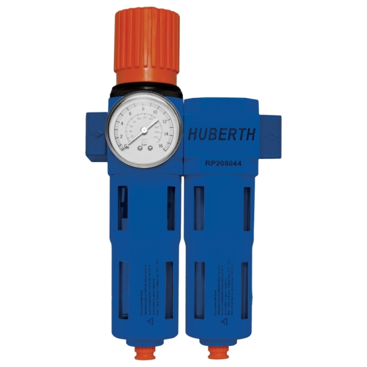 Экономичный фильтр с редуктором и контрольным манометром для двухступенчатой очистки сжатого воздуха от водного и масляного аэрозоля, а также механических загрязнений размером ≥ 5 мкм. Фильтрация последовательно осуществляется картриджем из пористой бронзы (первая ступень) и сменным фильтром тонкой очистки из вспененного полимера (2-я ступень).