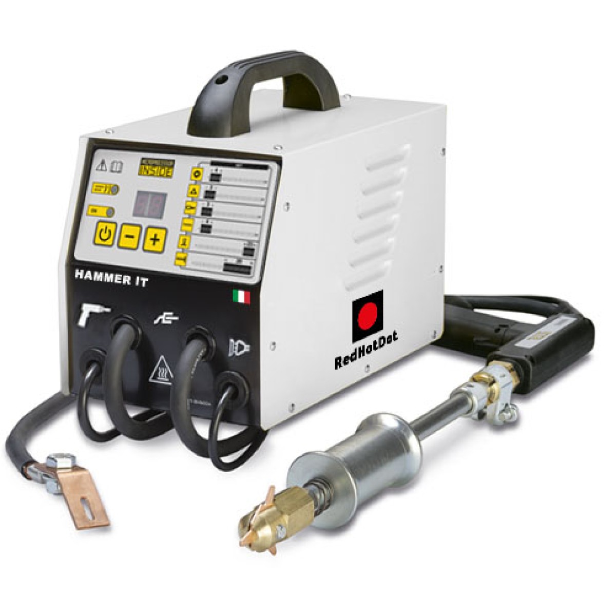 HAMMER IT - Профессиональный споттер для ремонта стальных деталей кузова любой сложности в промышленных условиях. Споттер оснащен системой упрощенной настройки Sinergic, которая позволяет быстро выбирать программы сварки. При активации программ автоматически изменяется ток и длительность сварочного импульса, а также соотношение между ними.