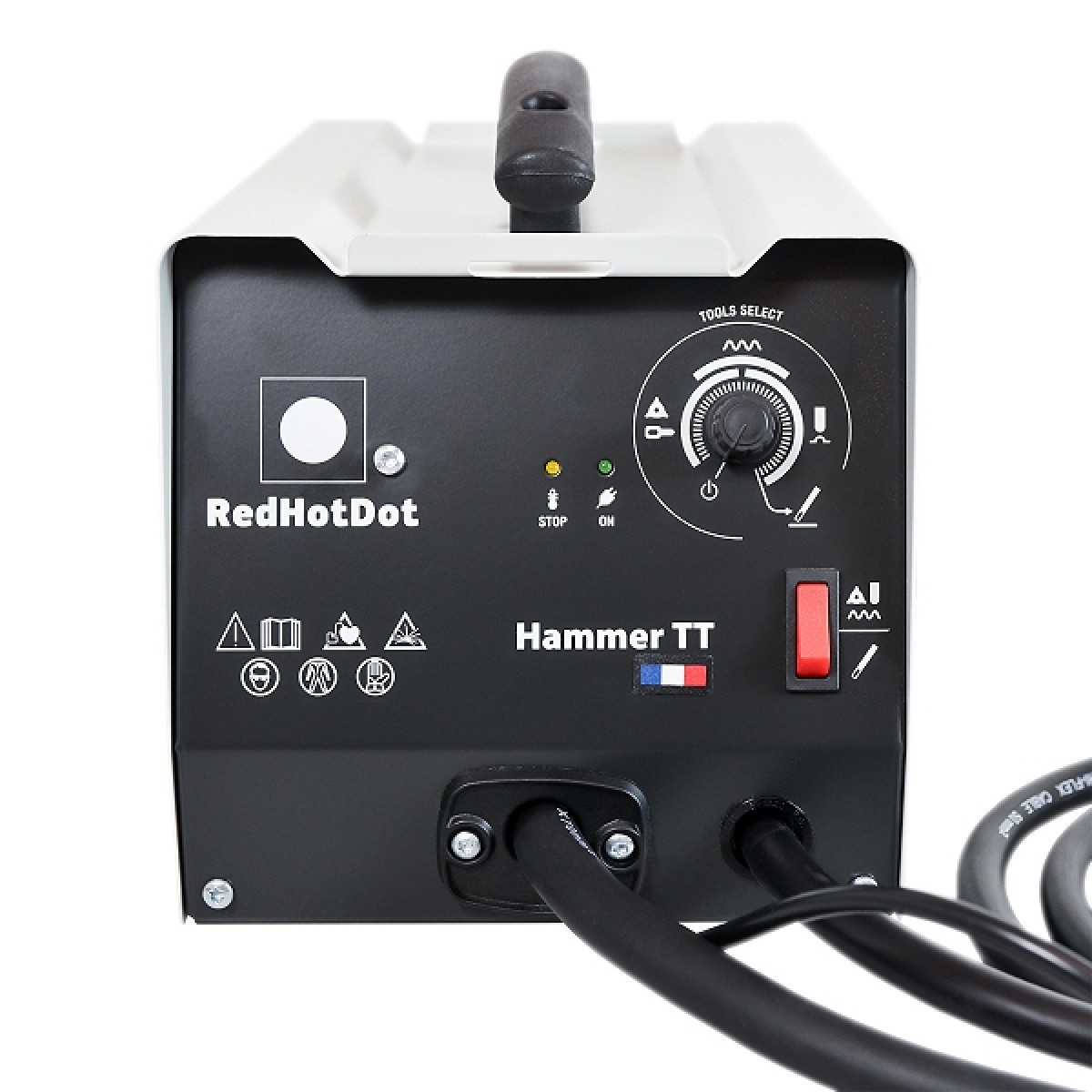 HAMMER TT предназначен для профессионального использования в промышленных условиях и позволяет ремонтировать стальные детали кузова любой сложности. Выбор инструмента осуществляется единственным поворотным регулятором на панели управления, что значительно сокращает время и исключает ошибки, связанные с настройкой длительности импульса.