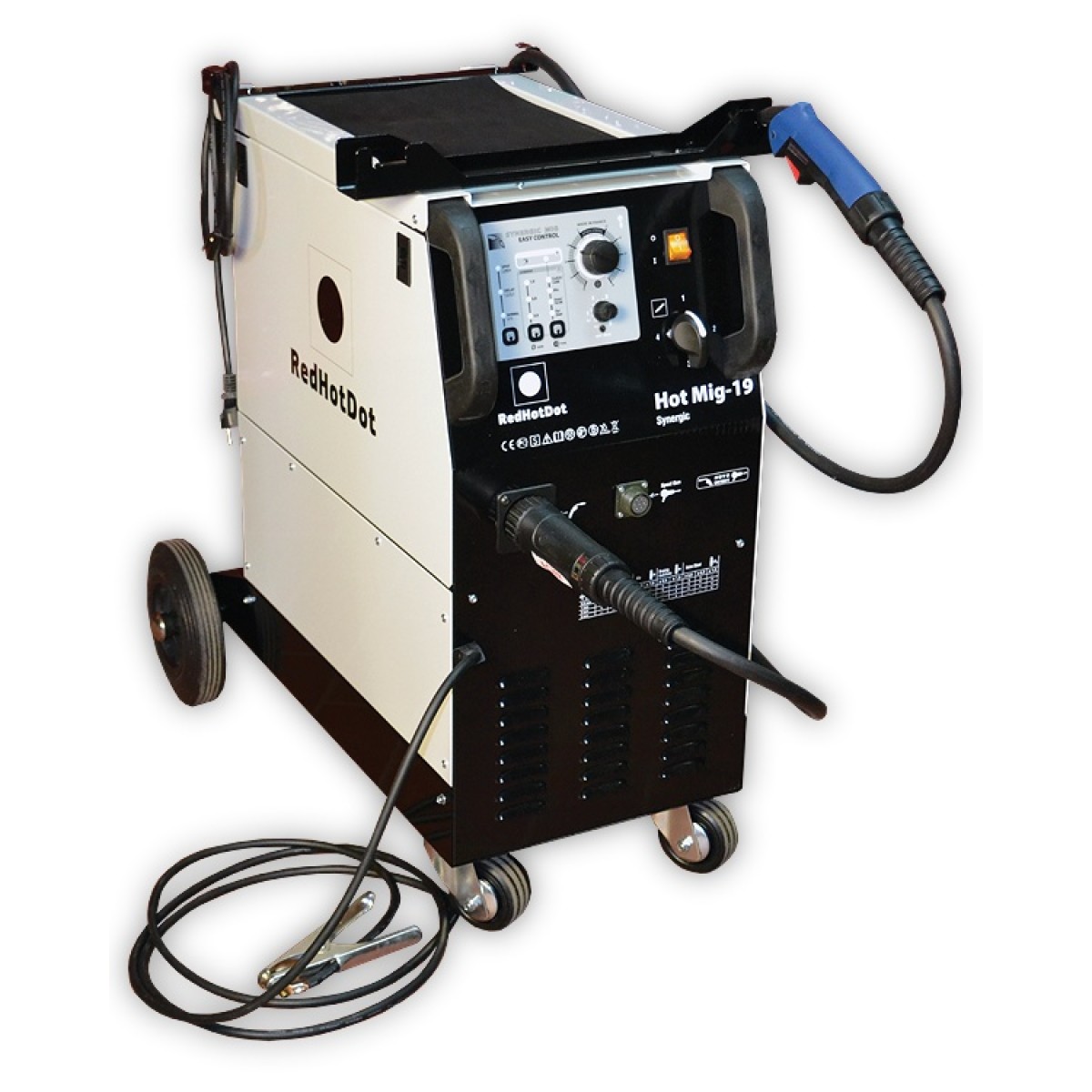 HOT MIG-19 - полуавтоматический сварочный аппарат для кузовного ремонта, а также для слесарных и ремонтных цехов. Используется для сварки обычной и нержавеющей стали, алюминия, сварки-пайки высокопрочных сталей проволокой CuSi и CuAl, прихватывания с регулируемым диаметром точки и пр.