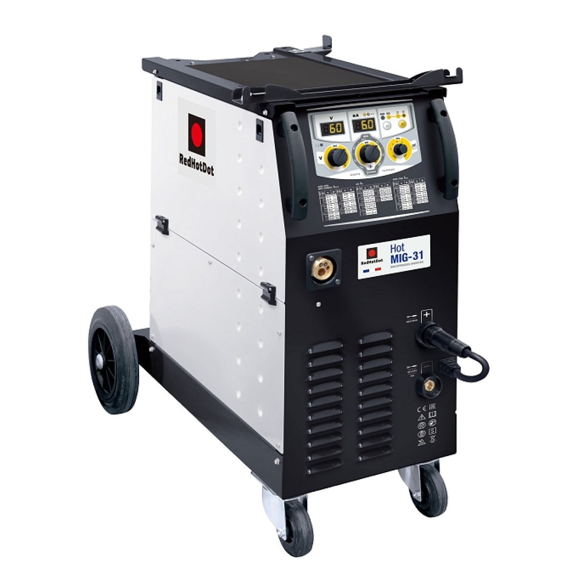 HOT MIG-31 - профессиональный инверторный сварочный аппарат класса «А» промышленного назначения для полуавтоматической сварки в среде защитного газа (MIG/MAG) и сварки стали и чугуна электродами с покрытием (MMA) в диапазоне рабочих токов от 40 до 310 А. Идеально подходит для ремонта легковых и грузовых автомобилей, автобусов и промышленного оборудования.