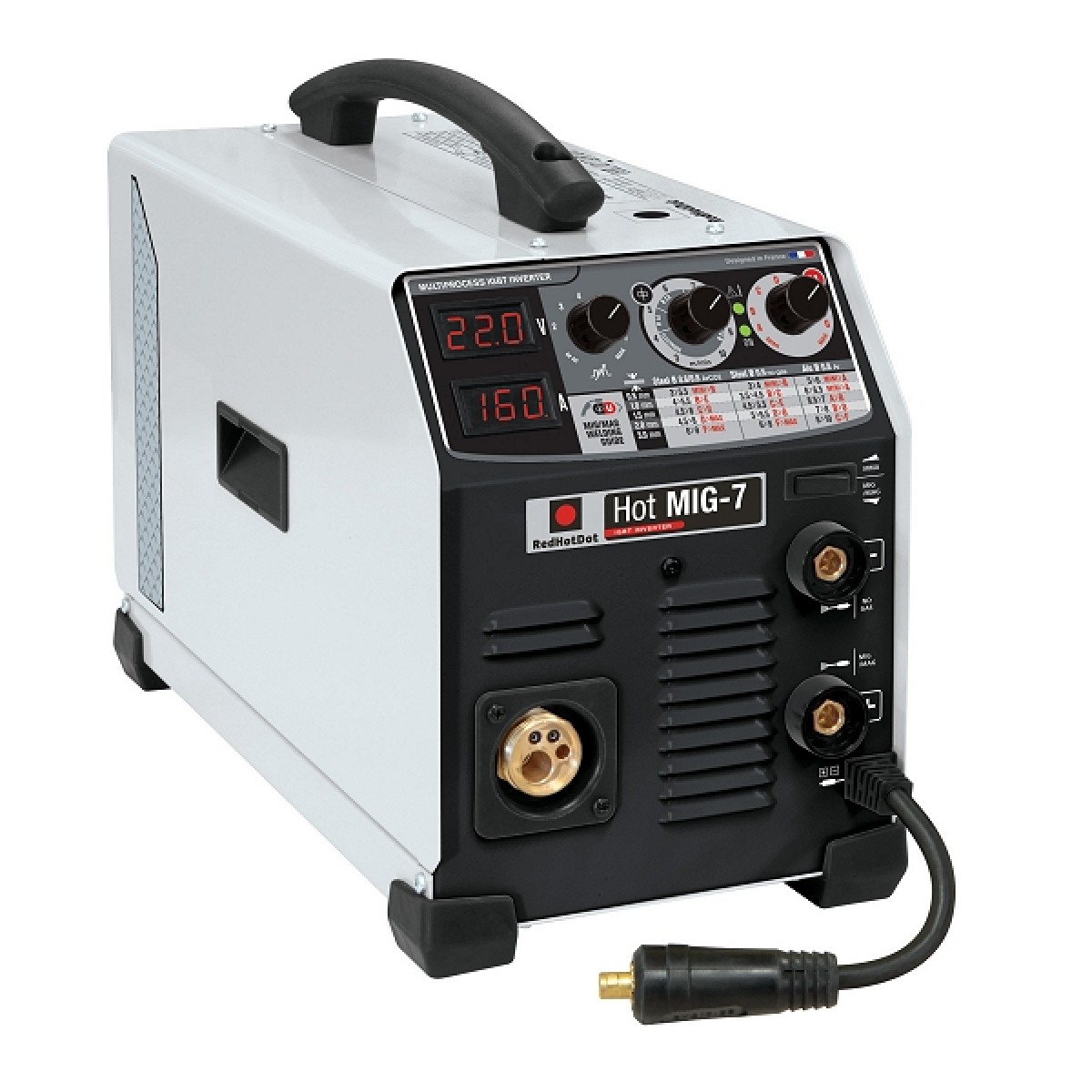 HOT MIG-7 Инверторный сварочный аппарат класса "А" разработан и укомплектован для работы с тонким алюминием, проволокой 0.8 - 1.0 мм.