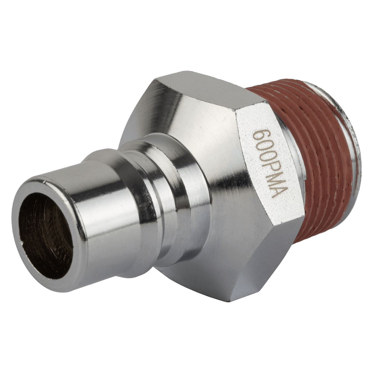 Штекер высокой пропускной способности для соединения пневматических магистралей с большим сечением шланга HRS-600PMA применяется для подключения пневматического инструмента и оборудования, соединения различных элементов. С одной стороны, фитинг имеет быстроразъёмное соединение типа рапид «папа», с другой – внешнюю резьбу 3/4″М. Разъем «папа» подсоединяется к подходящему разъему типа «мама».