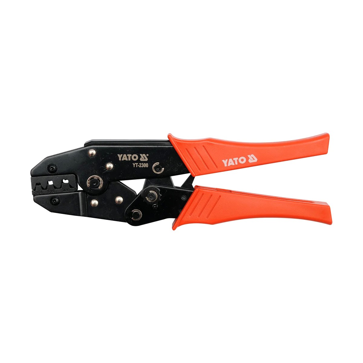 Инструмент для обжима проводов YATO YT-2300 с храповым механизмом для обжатия клемм разъемов на кабелях. Изготовлен из стального листа, закален до твердости 44-47HRC. Они поддерживают разъемы в диапазоне от 0,5 до 6,0 мм?.