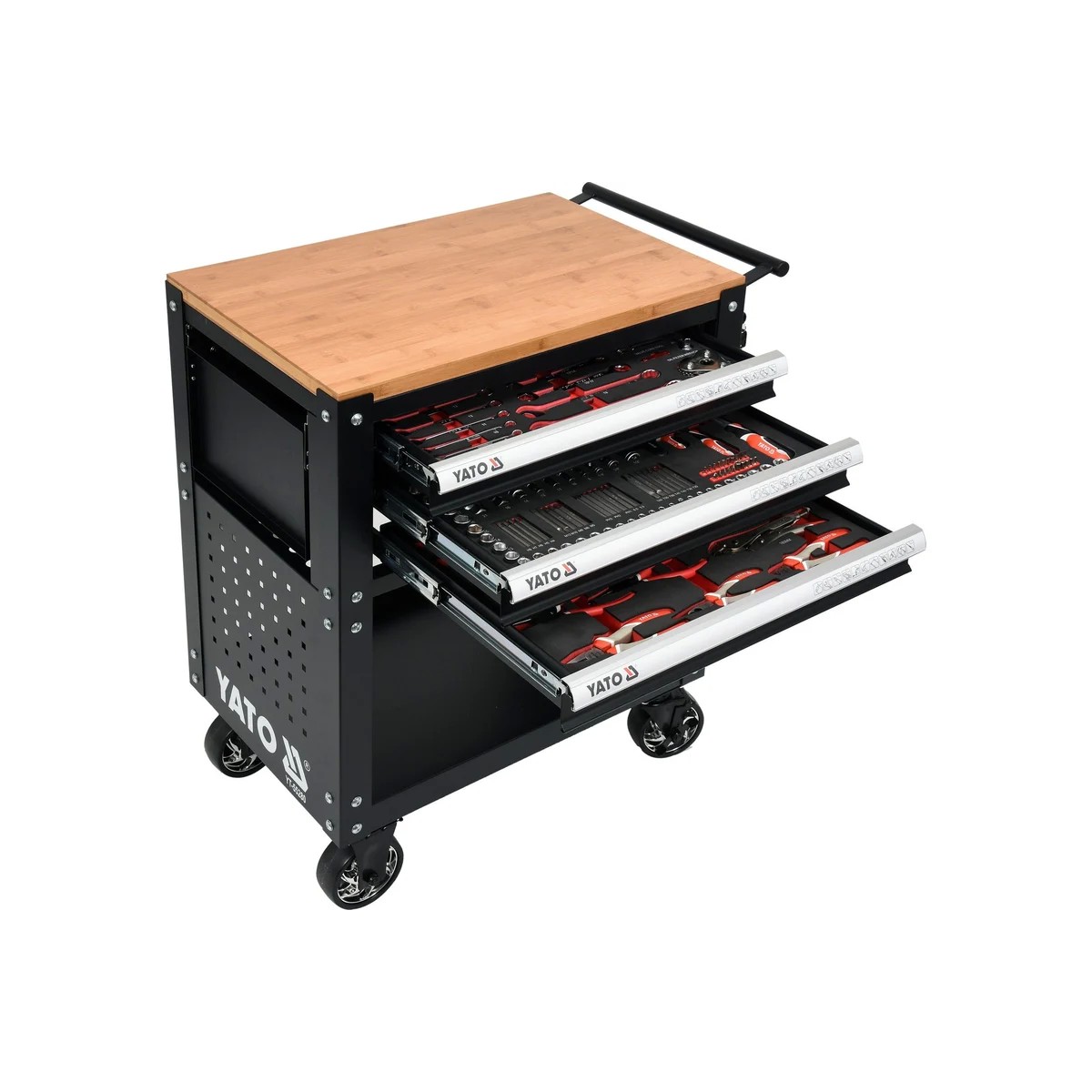 - Ящики на подшипниках с самоблокирующимся центральным замком и 2 ключами, предотвращают самопроизвольное открытие ящика во время передвижения тележки