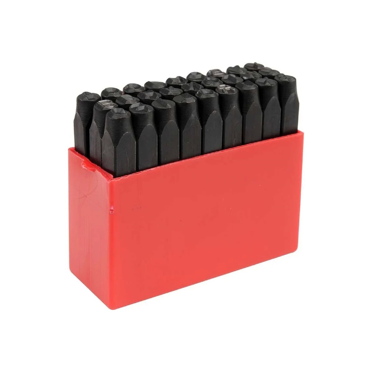 Буквенные клейма YATO 27пр-6мм YT-6862 изготовлены из углеродистой стали 1045CS, закалены примерно до 50-55 HRC. Прямоугольные марки высотой 65,5 мм и стороной 8 мм, заканчивающиеся маркировочным элементом - буквой высотой 6 мм. Маркировка осуществляется путем прикрепления буквы к материалу и удара сильного молотка по противоположному концу штампа. Набор собран в пластиковый контейнер, содержит буквы от А до Z и знак &.
