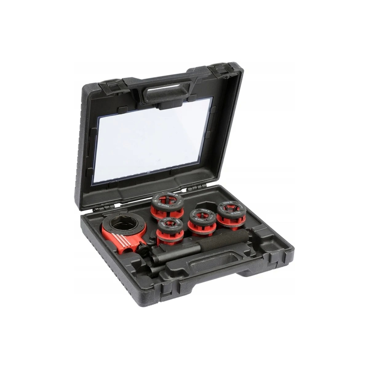 Набор трубных клуппов YATO 4 предмета, 3/8"; 1/2"; 3/4"; 1" YT-29001 предназначен для нарезки труб. В комплект входит рукоятка для клуппов с храповой системой, значительно облегчающей работу, и переключатель направления. Головки изготовлены из высококачественной стали 9Cr2, что обеспечивает прочность и долговечность. Набор упакован в пластиковый чемодан , в котором удобно переносить и хранить все элементы.