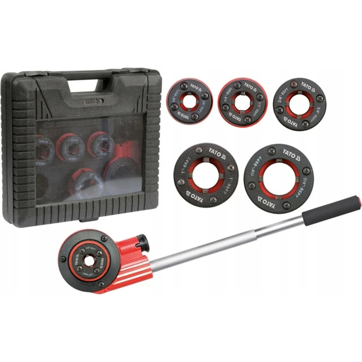 Трубные клуппы (6 шт.) YATO YT-2900 предназначаются для нарезания резьбы на металлических трубах. Набор состоит из шести головок разного диаметра, которые изготавливаются из прочного материала и прослужат длительное время.