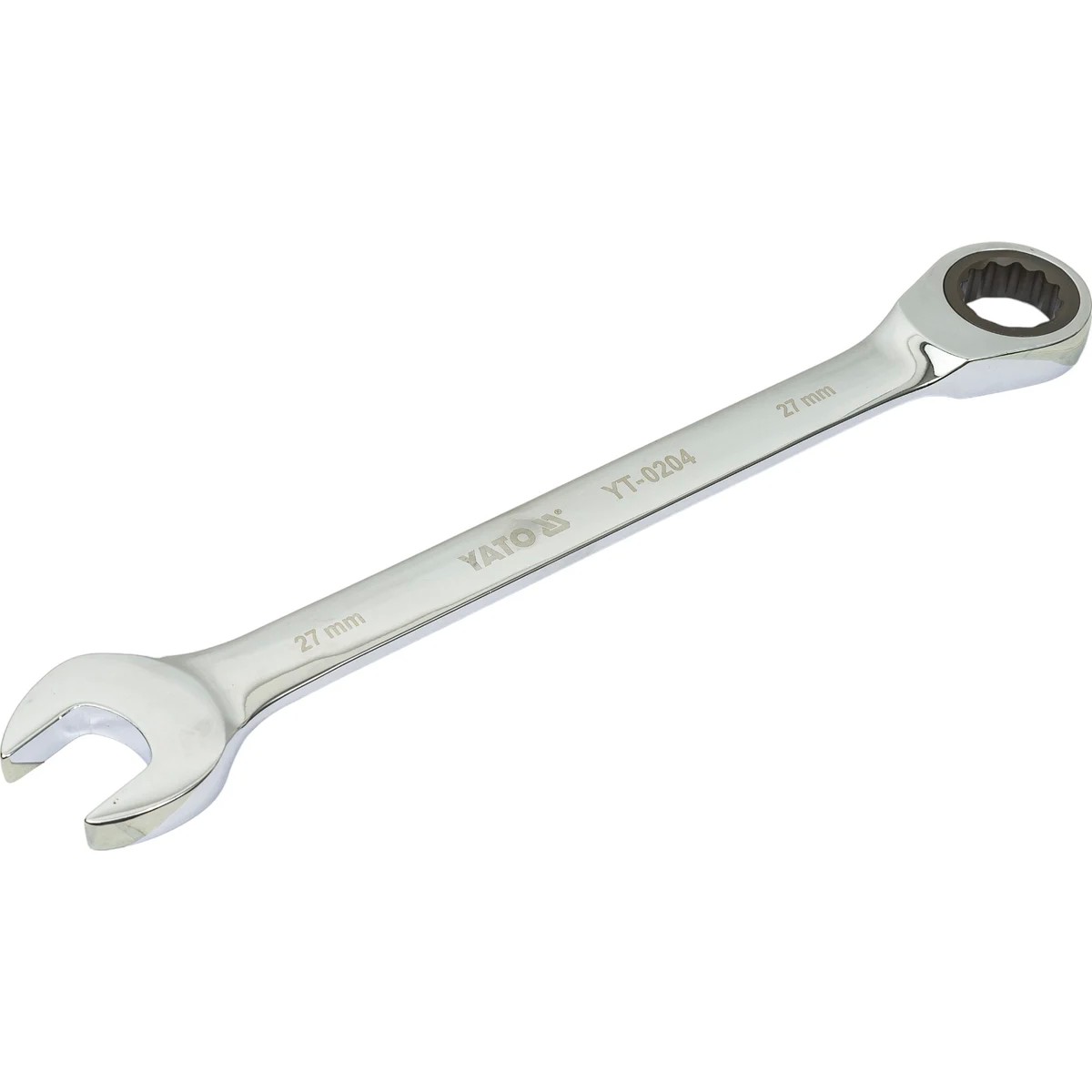 Комбинированный ключ с трещоткой YATO 27мм YT-0204 подойдет для стандартных шестигранных болтов и гаек. Инструмент выполнен из прочной стали. Форма тела ключа дополнена ребрами жесткости, которые исключают деформацию.