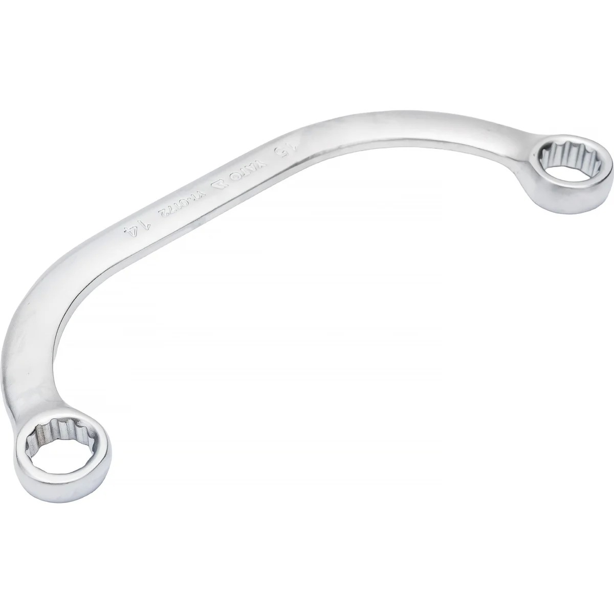 Накидной ключ высочайшего качества из хромванадиевой стали CrV 6140. Предназначен для работы в самых тяжелых условиях при больших нагрузках. Превышает стандарты DIN 3113. Предназначен для профессионального механического и автомобильного обслуживания. Благодаря специальному С-образному профилю ключ позволяет откручивать винты в местах, недоступных другим инструментам, например, выпускном и впускном коллекторах двигателей внутреннего сгорания.