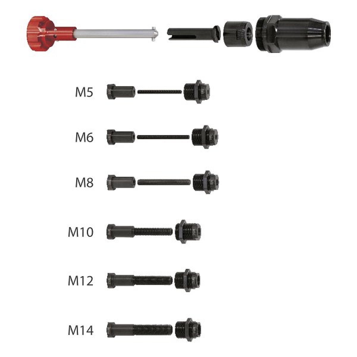 Комплект из 6 адаптеров для установки резьбовых вставок следующих номиналов: M5, M6, M8, M10, M12, M14. Используются вместе с заклёпочной машинкой DRAGON.