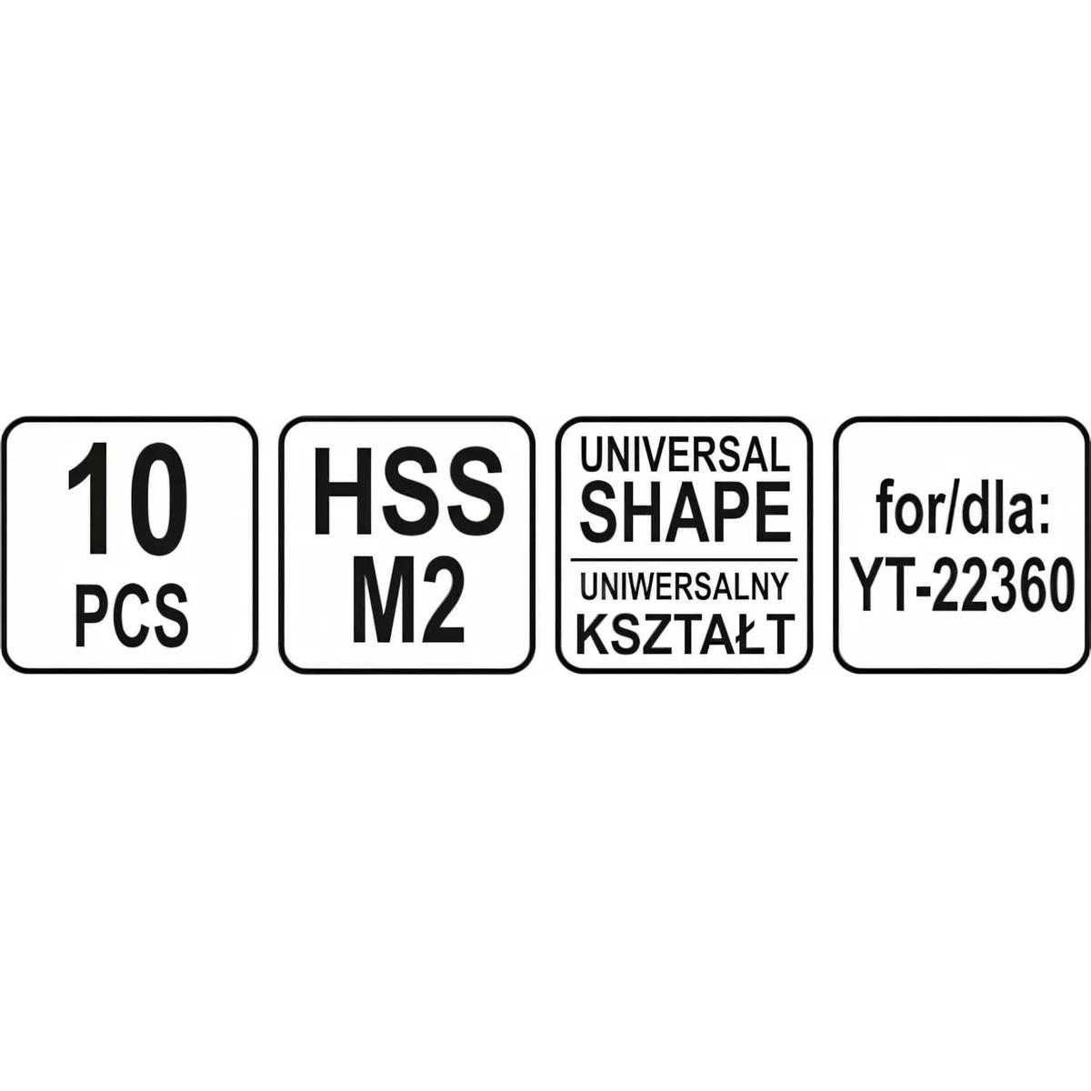 В комплекте десять лезвий, которые выполнены из высокопроизводительной быстрорежущей стали.