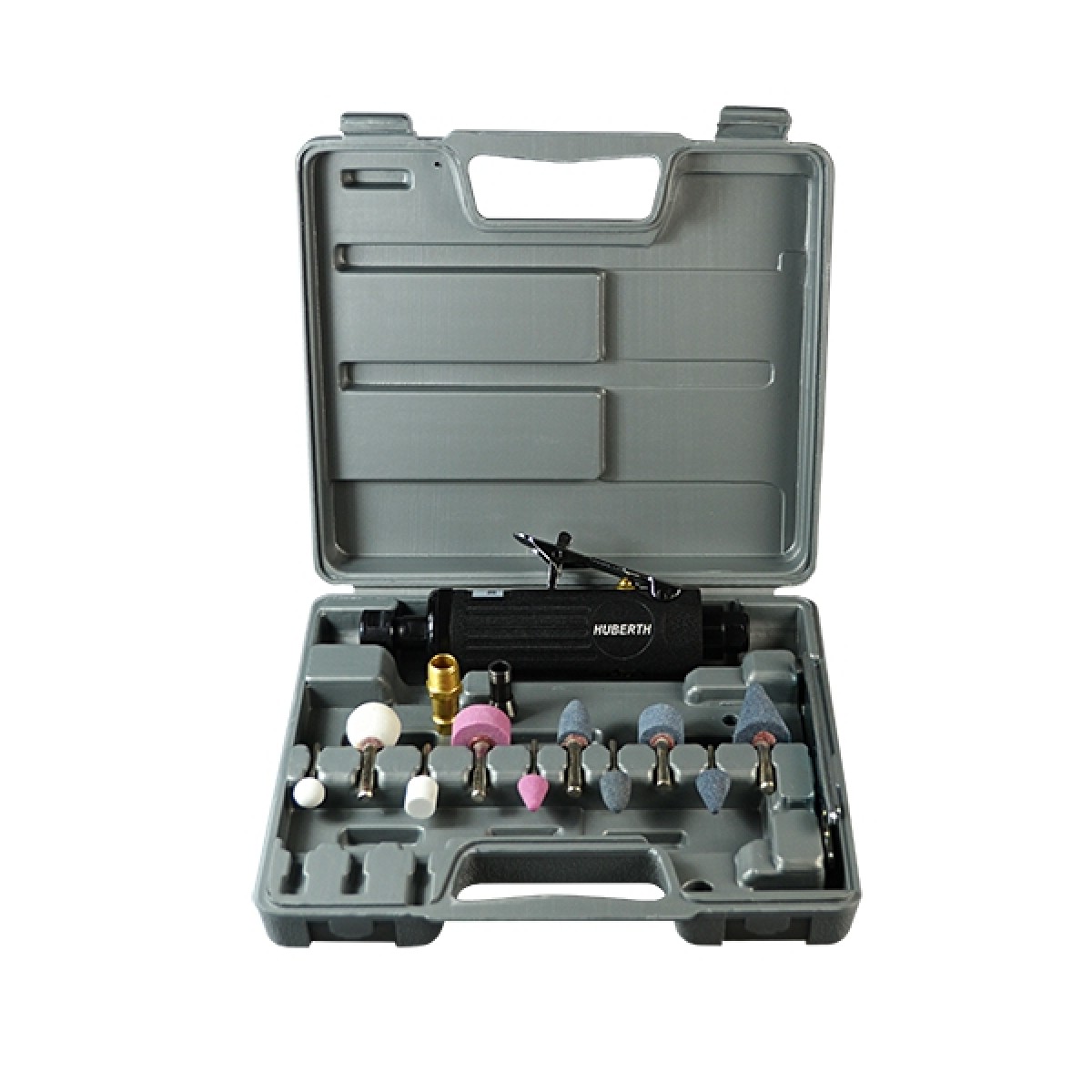 Пневматическая шлифовальная машинка в комплекте с набором из 10 шлифовальных камней-насадок наиболее популярных размеров.