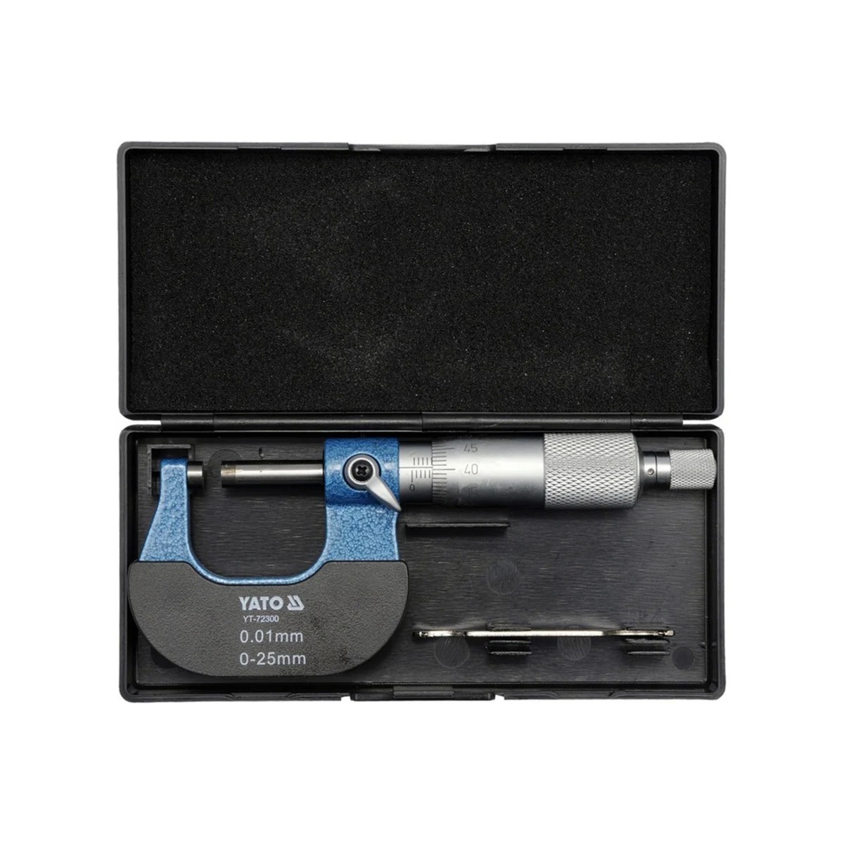 Микрометр, предназначенный для выполнения точных измерений в диапазоне от 0 до 25 мм.