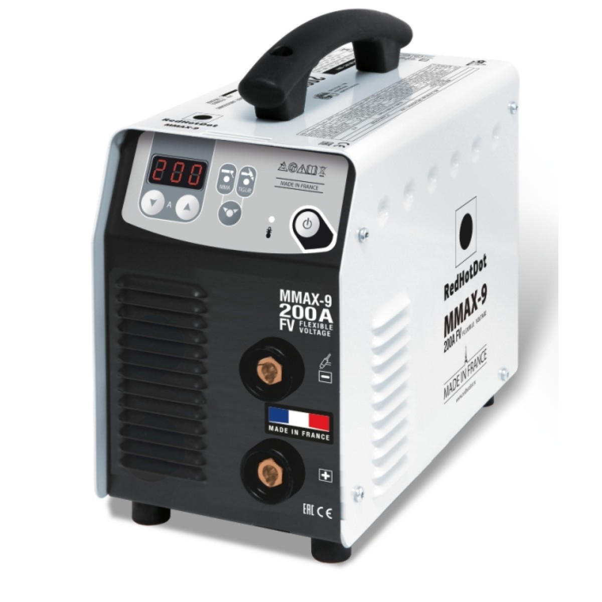 Аппарат MMAX-9 с инверторным генератором для сварки без газа электродами с покрытием (MMA), а также вольфрамовыми электродами в среде инертного газа (TIG DC). Аппарат оснащен цифровым дисплеем и кнопочным управлением с настройкой сварочного тока в диапазоне от 10 до 200 А. Отличается малыми размерами и небольшим весом.