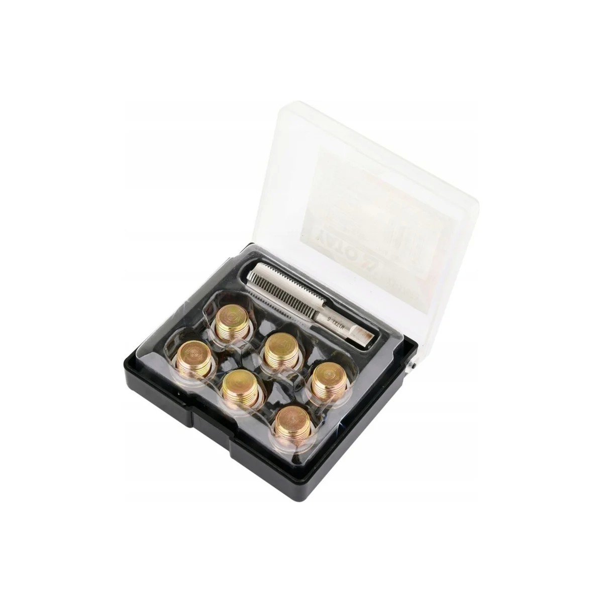 Набор для ремонта масляных пробок YATO М17x1,5мм YT-17573 - набор для простого ремонта резьбы масляного поддона, сливных пробок коробки передач и т. д. Подходит для большинства распространенных резьбовых соединений легковых автомобилей и легких грузовиков.