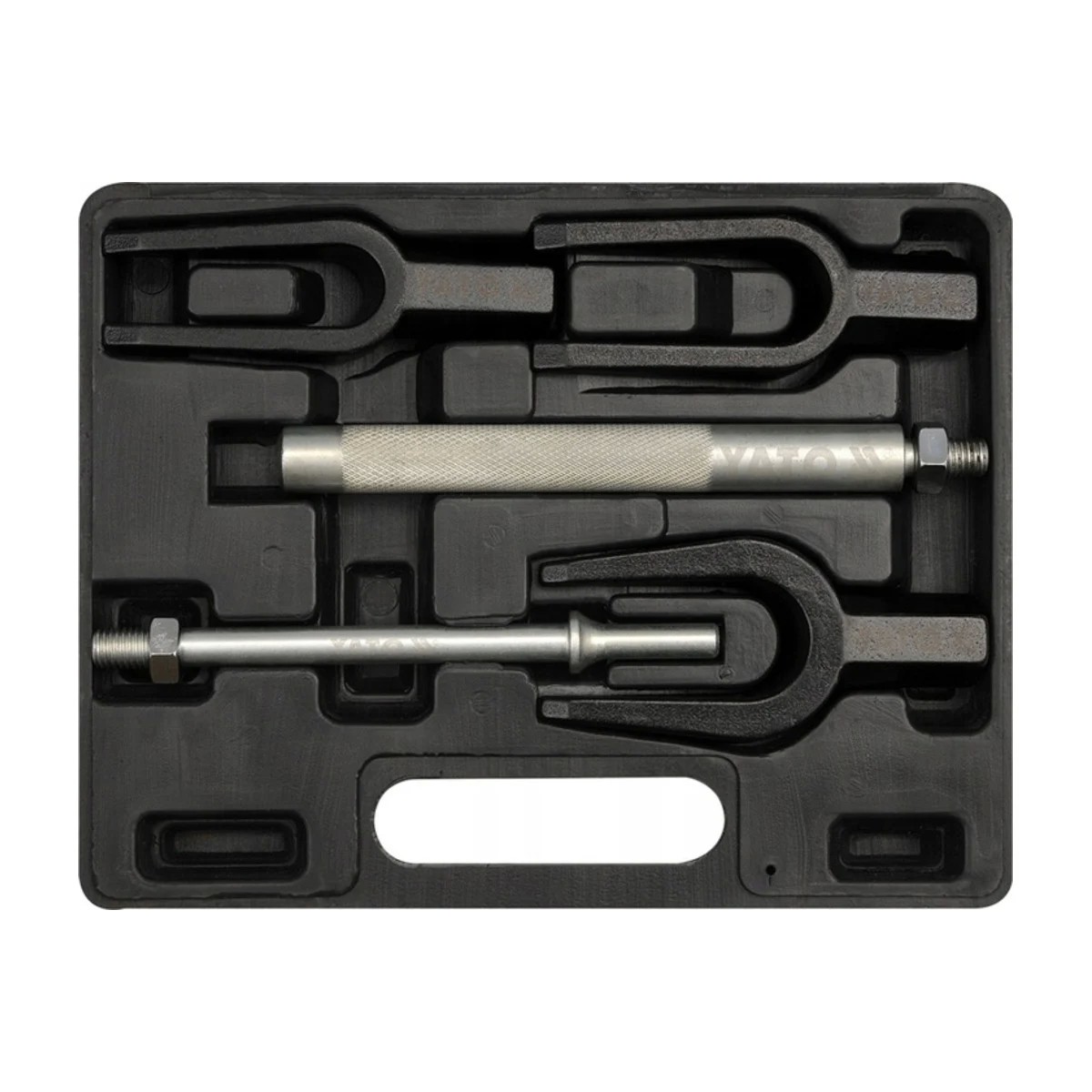 Практичный набор съемников рулевых тяг, состоящий из трех вилок и затягивающихся ручек , одна из которых используется для ударов ручным молотком , а другая – для ударов отбойным молотком .