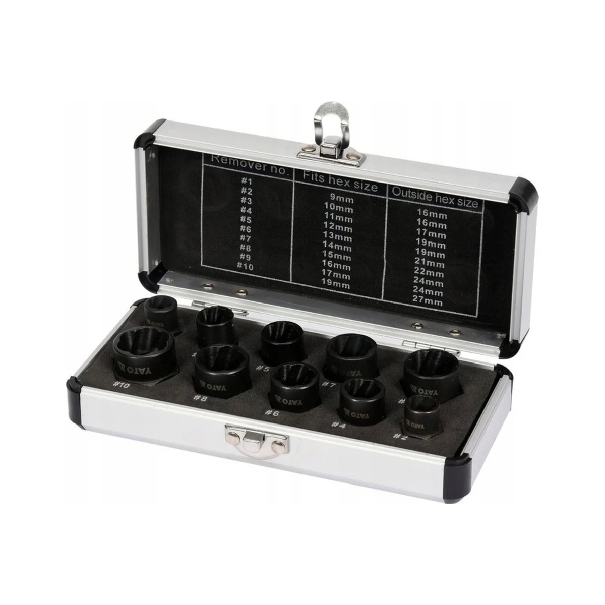 Набор головок для поврежденных болтов и гаек 10 предметов YATO YT-06031 предназначены для ослабления заклинивания болтов и гаек. Их также можно использовать для откручивания поврежденных болтов, гаек и шпилек. Головки можно использовать для ослабления болтов и гаек с правой резьбой.