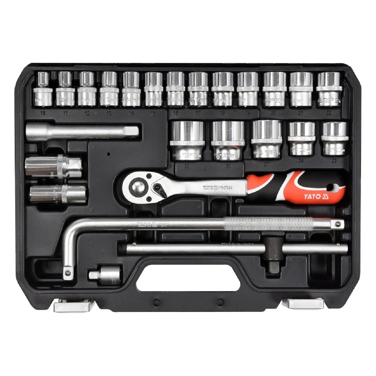 Набор головок с трещоткой YATO 1/2'', 25пр YT-38741 предназначен для сервисных центров и мастерских.
