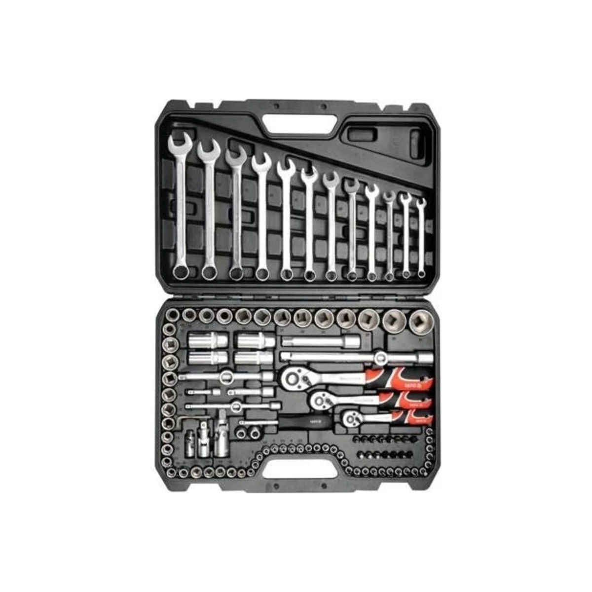 Набор инструментов YATO 1/2'' 111пр YT-38831 разработан для удовлетворения потребностей специализированных автомобильных и механических служб. Торцевые ключи и привод головок изготовлены из прочной инструментальной стали. Ключи были изготовлены методом штамповки, и перед закалкой они были откалиброваны с помощью точных датчиков и контрольных устройств. Головки оснащены системой AS-Drive, увеличивающей максимальный крутящий момент на 25%, с полной защитой обода гаек. В комплект также входят биты из твердой стали S2. Комплект позволяет выполнять работы, требующие очень высоких нагрузок и точности, позволяет выполнять множество сервисных работ, связанных с отвинчиванием и затяжкой резьбовых соединений различных номинальных размеров. Трещотки имеют трехкомпонентную ручку и 72 зубца (рабочий ход 5 градусов).