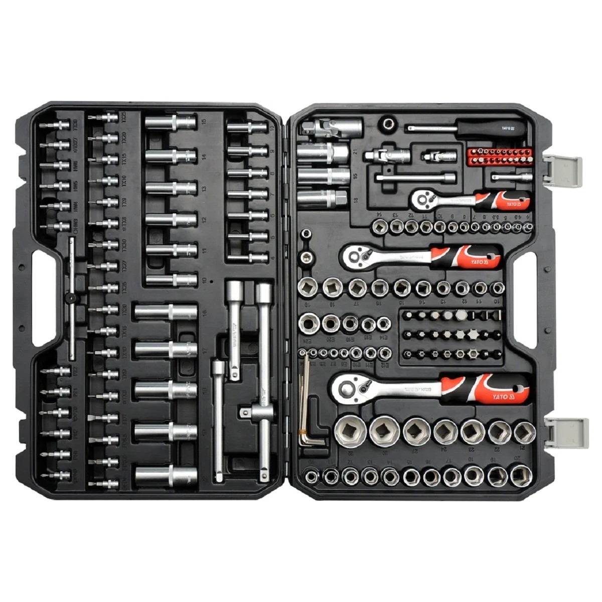 Набор инструментов YATO 1/2'', 173пр XXL YT-38931 представляет собой профессиональный комплект, разработанный для удовлетворения потребностей специализированных автомобильных и механических сервисов. Торцевые ключи и привод торцевых головок изготовлены из прочной инструментальной хромованадиевой стали CrV 50BV3. Колпачки изготавливались методом штамповки, а перед процессом закалки калибровались с помощью точных калибров и контрольных приборов.