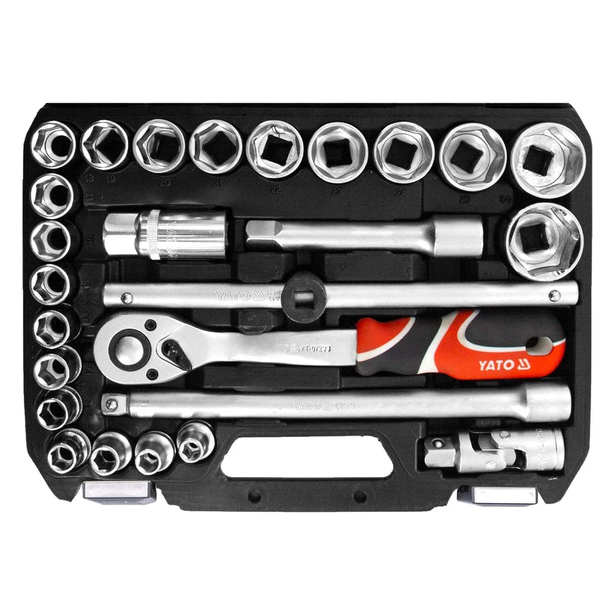 Профессиональный набор инструментов, разработанный для удовлетворения потребностей специализированных автомобильных и механических служб. Торцевые ключи и торцевой головки изготовлены из прочной хромованадиевой стали CrV 50BV3.