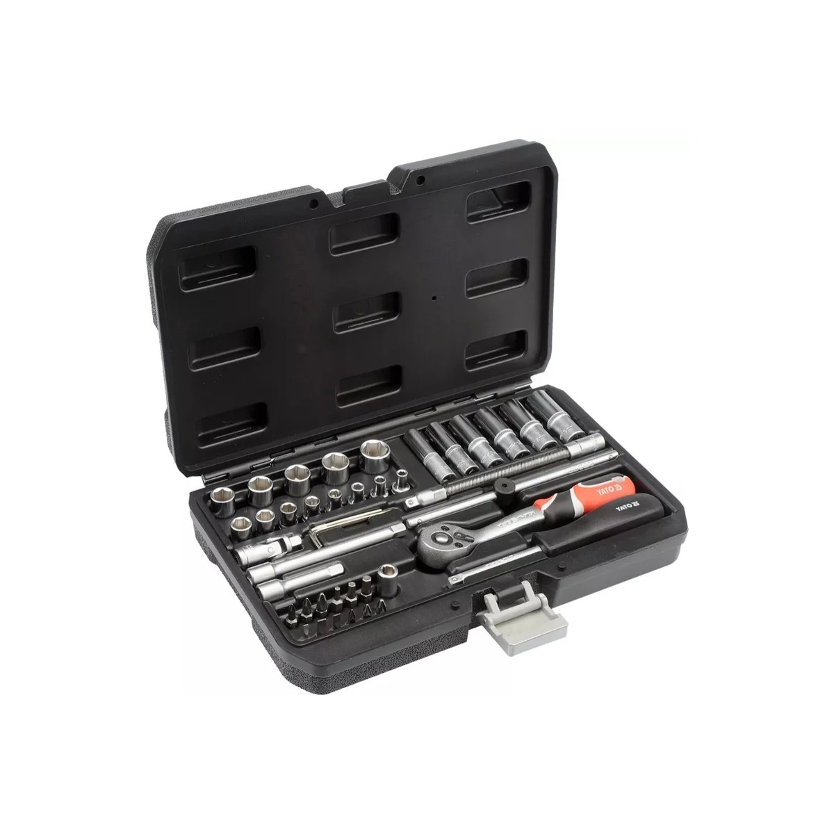 Головки и насадки из набора можно эффективно применять в процессе монтажа и демонтажа различных резьбовых соединений со значительными нагрузками. Вместе с головками набор включает в себя некоторые другие специализированные инструменты: вороток, удлинители и трещотка с переключателем и храповым механизмом. Трещотка оснащена 72 зубьями для надежного хвата крепежа, а также удобной прорезиненной ручкой для предотвращения скольжения.
