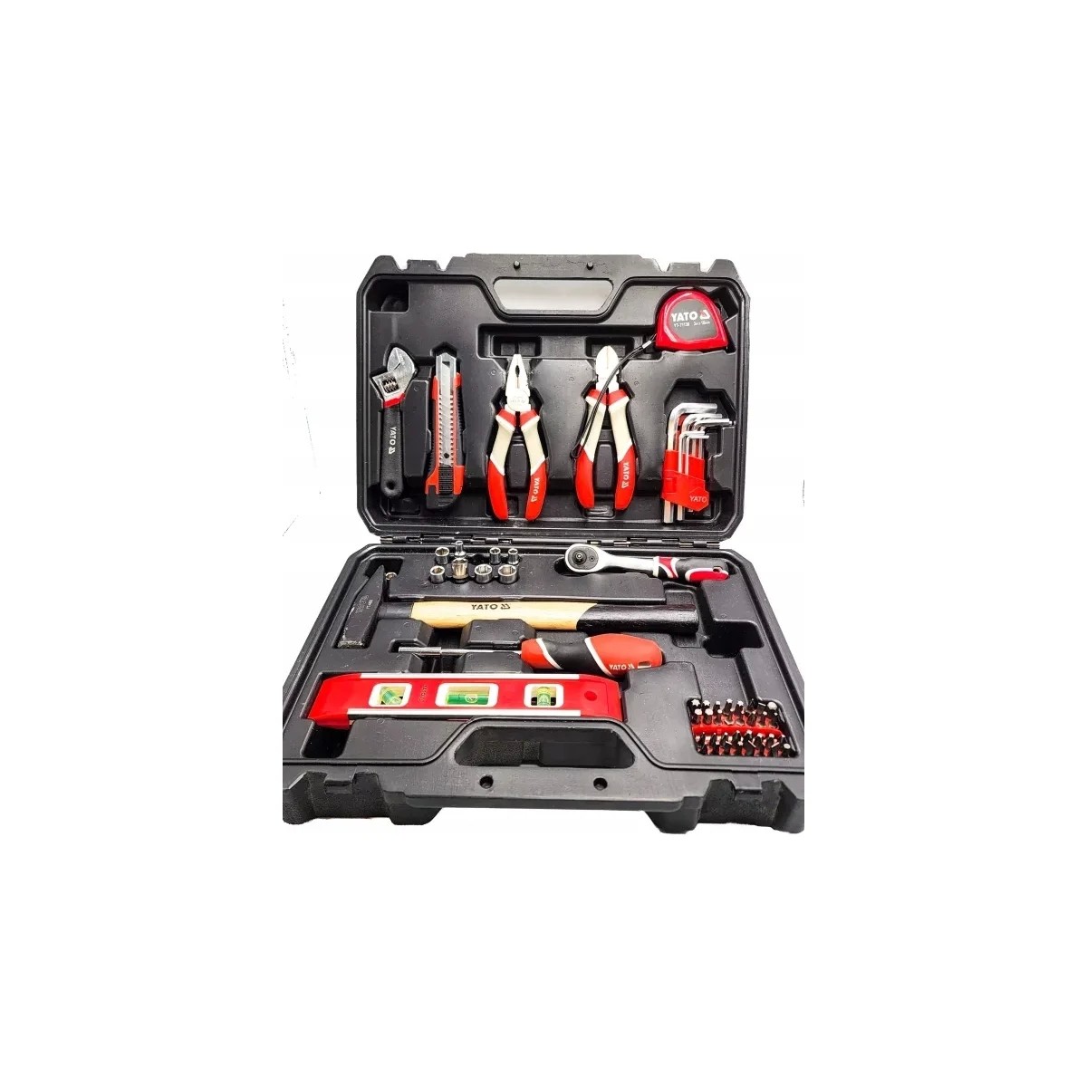 Функциональный набор инструмента содержит самые полезные инструменты, необходимые в каждом доме. Включает уровень, трещотку 1/4 дюйма, молоток, плоскогубцы, рулетку, головки и биты.
