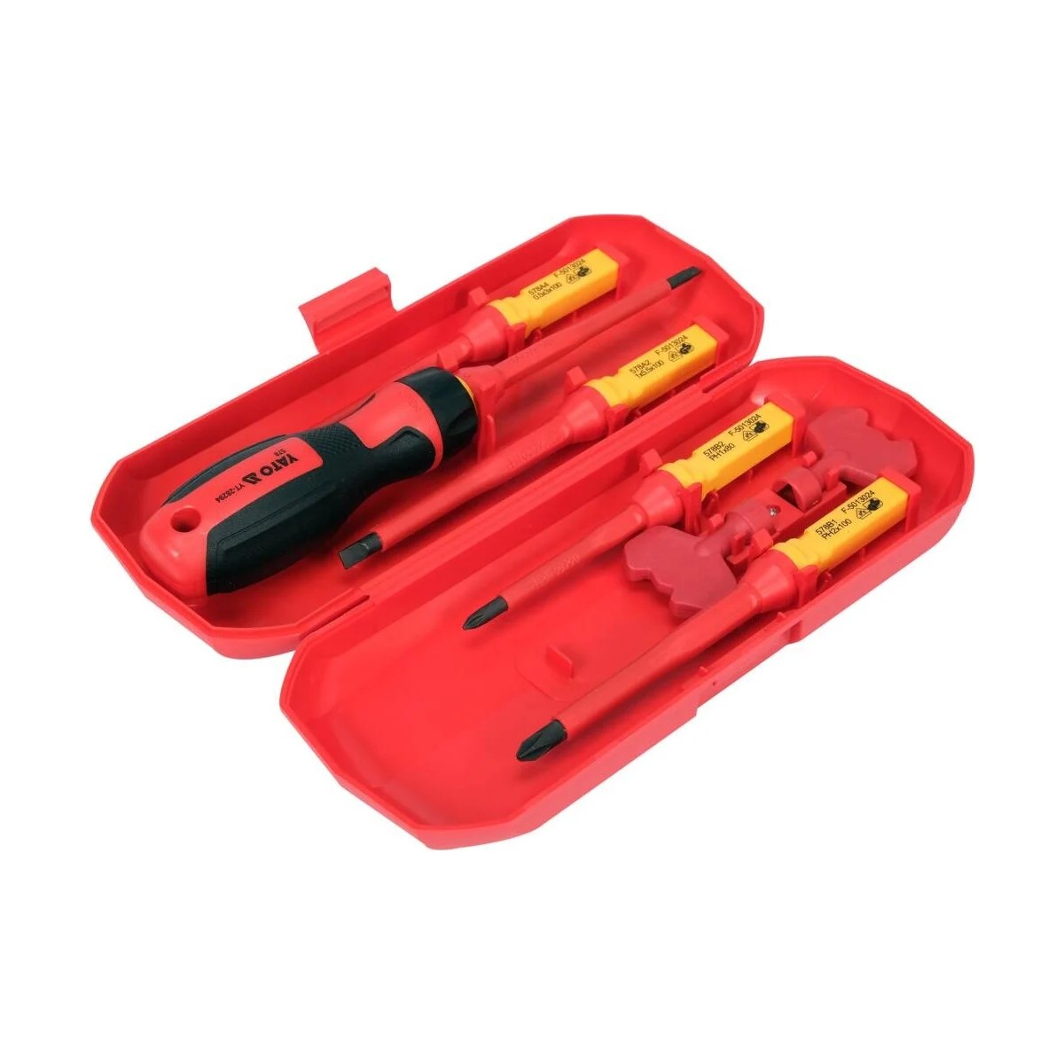 - Изолированная отвертка VDE в рукоятке + конфигурация с пятью сменными битами