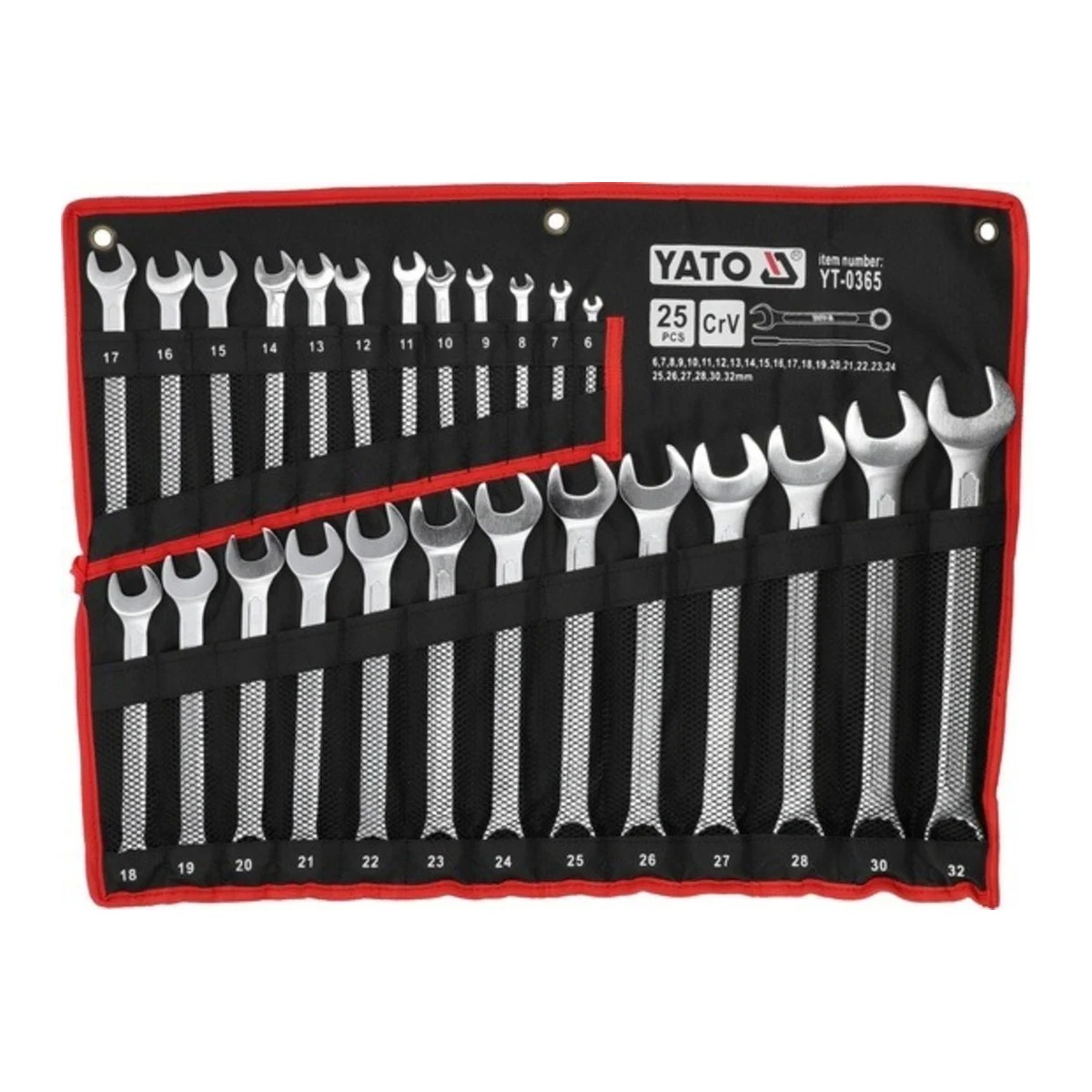 Набор комбинированных ключей YATO 6-32мм 25шт САТИН YT-0365 включает в себя комплект самых ходовых размеров инструмента. Каждый ключ выполнен из высокопрочной стали. Благодаря точному совпадению размеров не срывает грани.