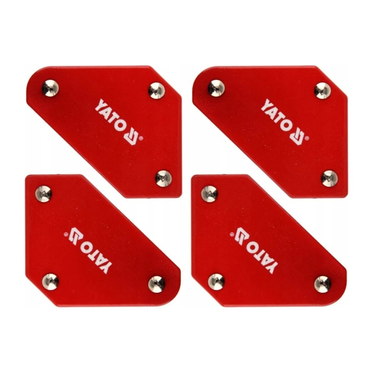 Набор из 4 мини-уголков для магнитной сварки YT-08677, изготовленных из стального листа и сильных ферритовых магнитов. Поверхность с порошковым покрытием. Предназначен для временного соединения металлических элементов при сварке, сверлении и покраске.