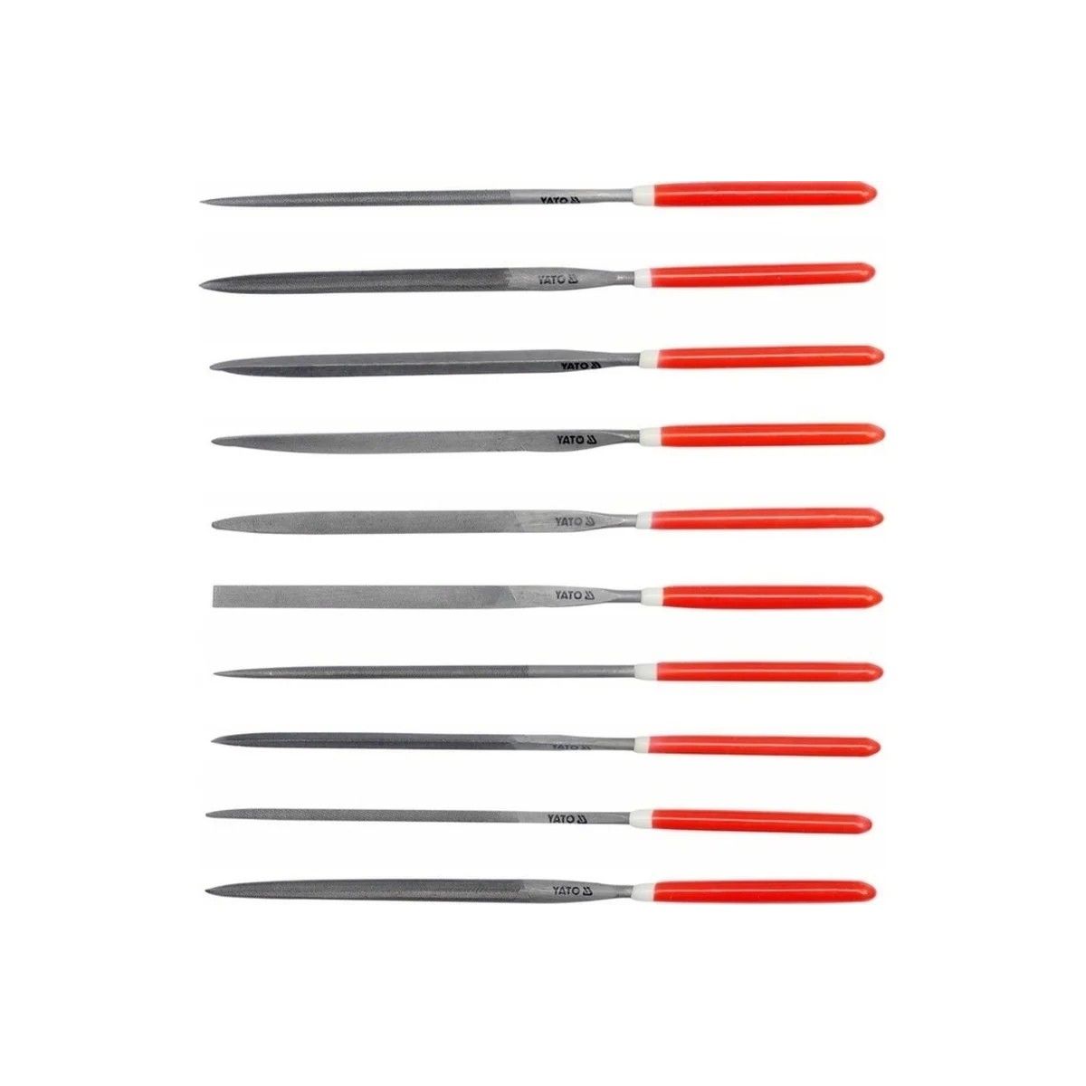 Набор надфилей YATO 140x65мм 10 предметов YT-6163 включает в себя инструмент, который имеет перекрестную насечку. Она позволяет работать с изделиями под любым углом.