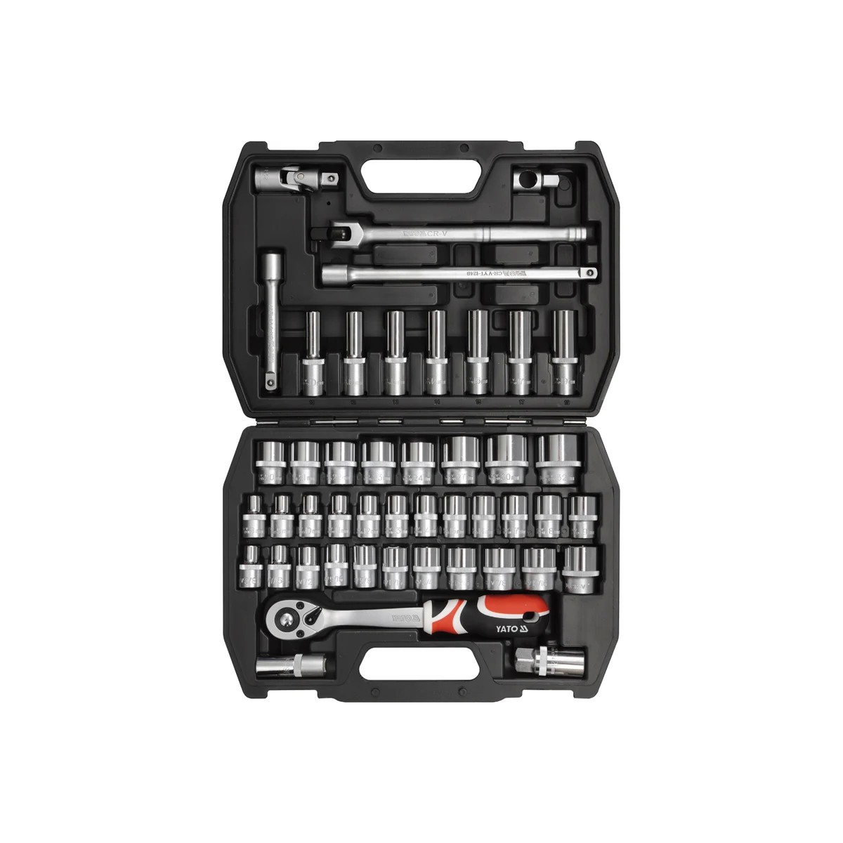 Профессиональный набор состоит из торцовых головок и связанных с ними принадлежностей. Инструмент помещен в специальный пластиковый футляр доя удобства хранения и транспортировки. Все элементы изготовлены из высококачественной хромованадиевой стали, что обеспечивает прочность, надежность и долговечность. Набор может быть использован для различных работ по монтажу и демонтажу резьбовых соединений с высокими нагрузками. Торцевые головки достигают отличного сцепления в процессе работы, благодаря большому контакту с поверхностью крепежа.