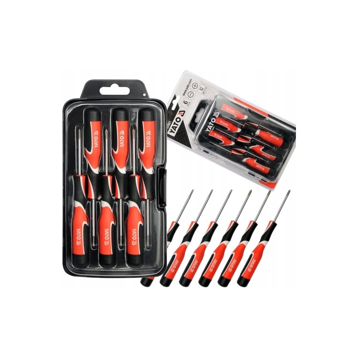 Набор отверток для точных работ YATO 6пр YT-25861 содержит инструмент с закаленными магнитными наконечниками. Это облегчает работу с маленькими винтами. Ручка выполнена по трехкомпонентной технологии, отделана вращающейся накладкой, облегчающей и ускоряющей ввинчивание.