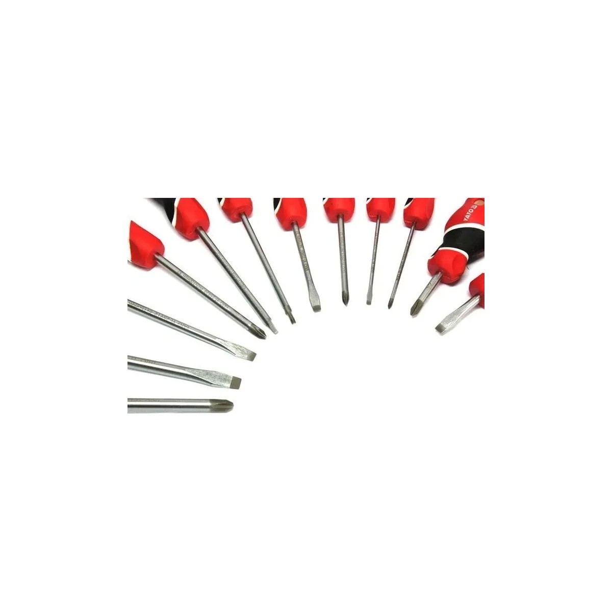 Набор отверток YATO 12 предметов YT-25967 состоит из двенадцати профессиональных шлицевых и крестовых отверток, что позволяет использовать его для работы с широким спектром винтов и шурупов.