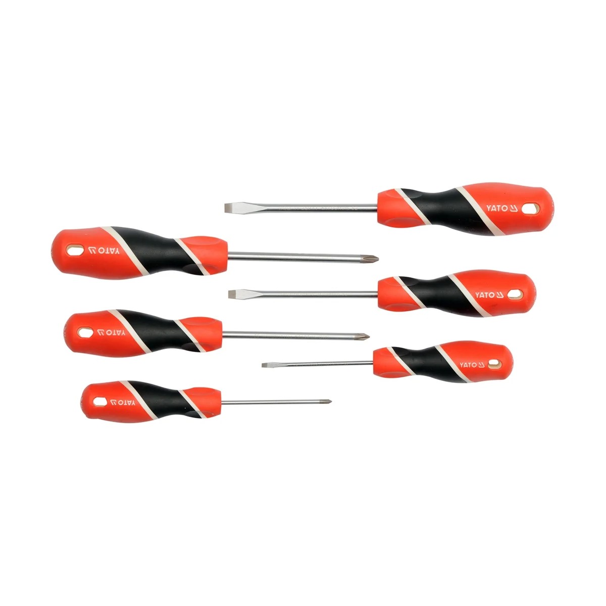 Набор отверток 6 предметов YATO YT-25965 укомплектован стержнями из стали S2. Сталь закалена до твердости 58 HRC. Это позволяет работать с крепежом без повреждения рабочей части отверток.