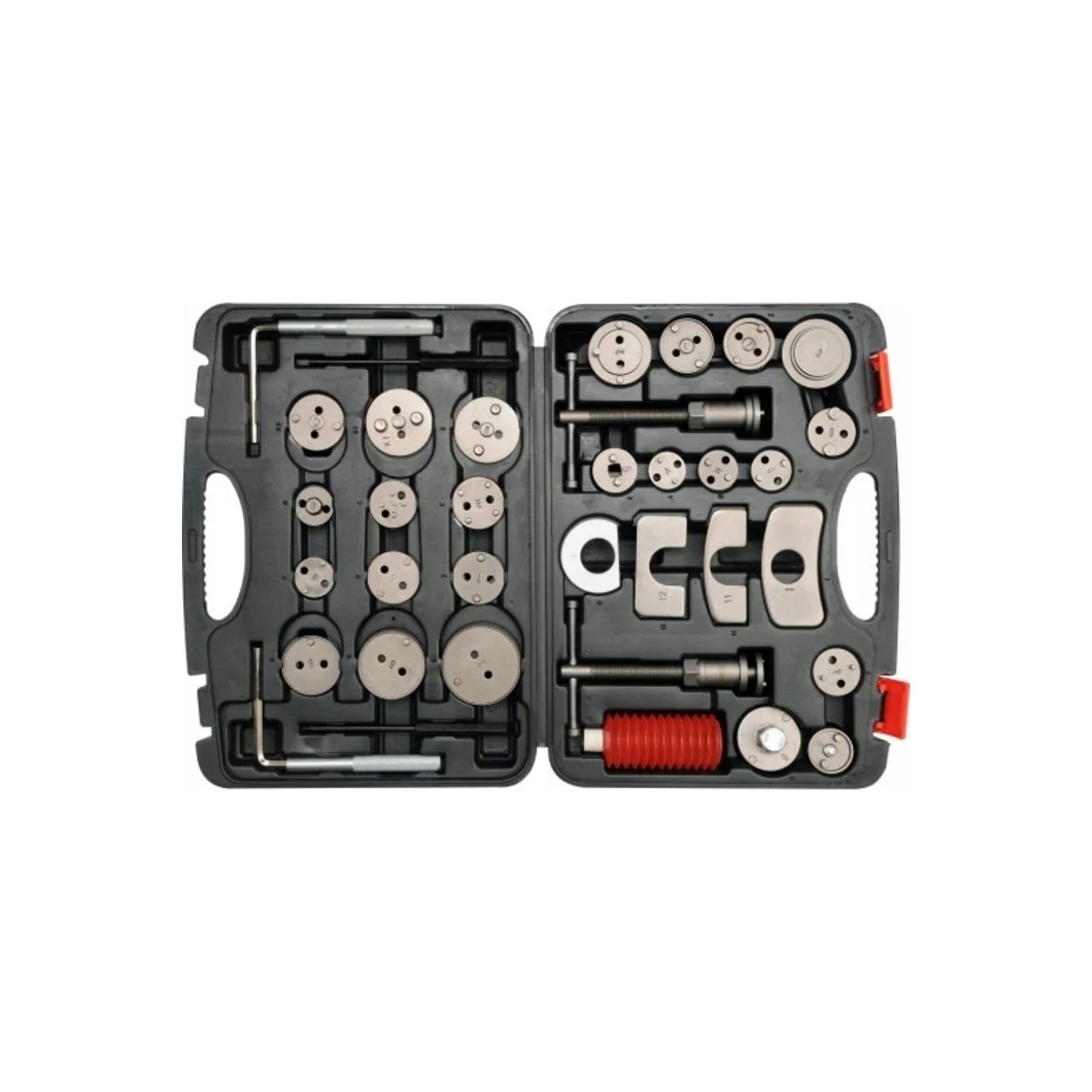 Набор сепараторов для тормозных суппортов YATO, 35 предметов YT-06822 предназначен для снятия тормозных поршней и для разжима тормозных цилиндров, оснащён разжимным механизмом изготовленным из прочной стали. Благодаря набору дисков, возможна установка поршней в тормозных цилиндрах автомобилей разных типов. Устройство состоит из двух спиральных обжимных инструментов для правой и левой руки и набора пластин, позволяющих замену поршней.