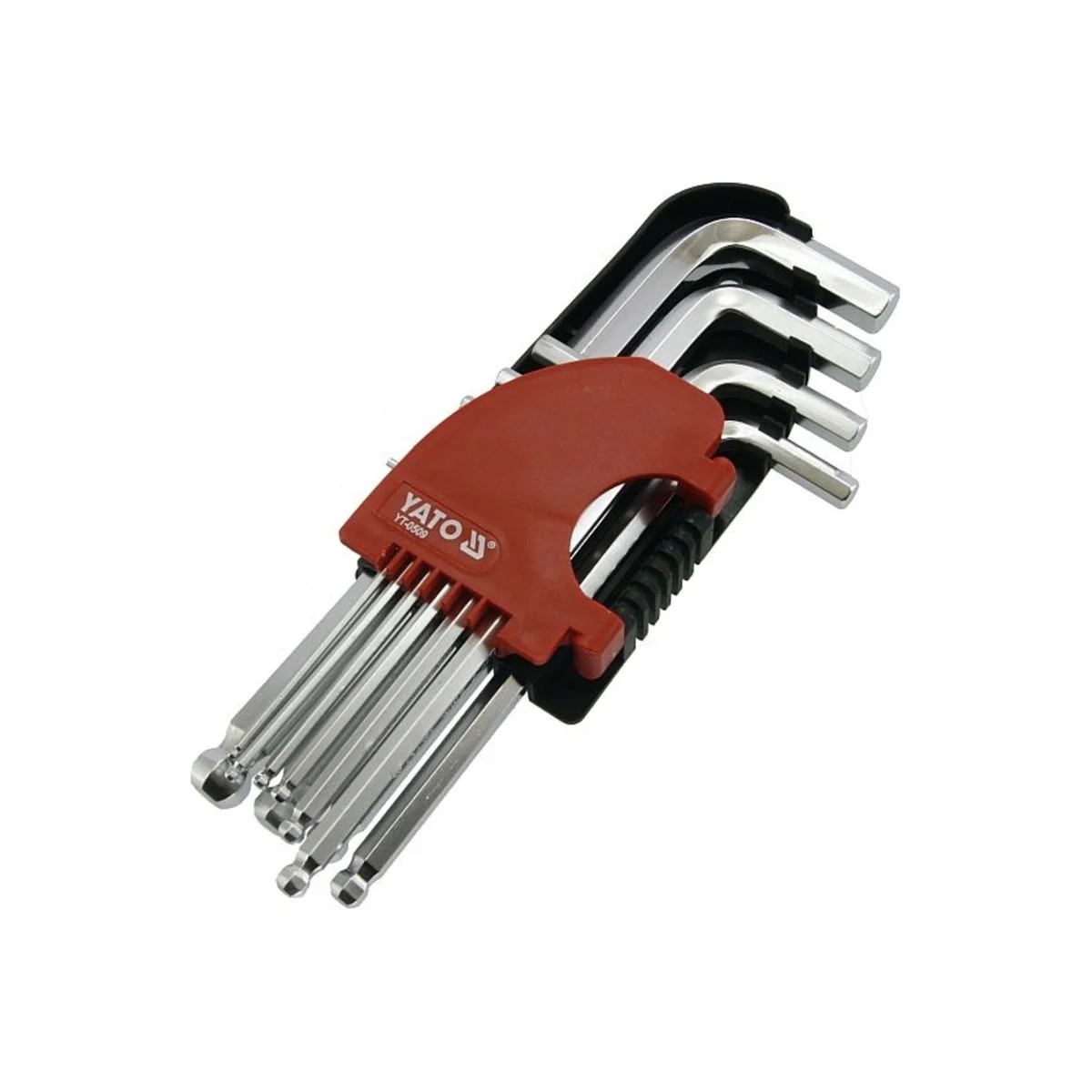 Набор шестигранных ключей YATO 10 штук, 2,0-12мм, с шаром YT-0509 применяется для работы с крепежом внутреннего шестигранного рабочего профиля. Ключи позволяют прилагать высокие крутящие моменты при использовании длинной части инструмента в качестве рукоятки. Длинная часть снабжена шаром для работы в труднодоступных местах, позволяя передавать вращение под углом 15°. Ключи изготовлены из легированной хром-ванадиевой стали, по технологии, позволяющей применять высокие нагрузки. Инструменты станут прекрасным помощником как в профессиональной деятельности, так и в быту. Для удобства использования и транспортировки набор поставляется в пластиковой кассете.