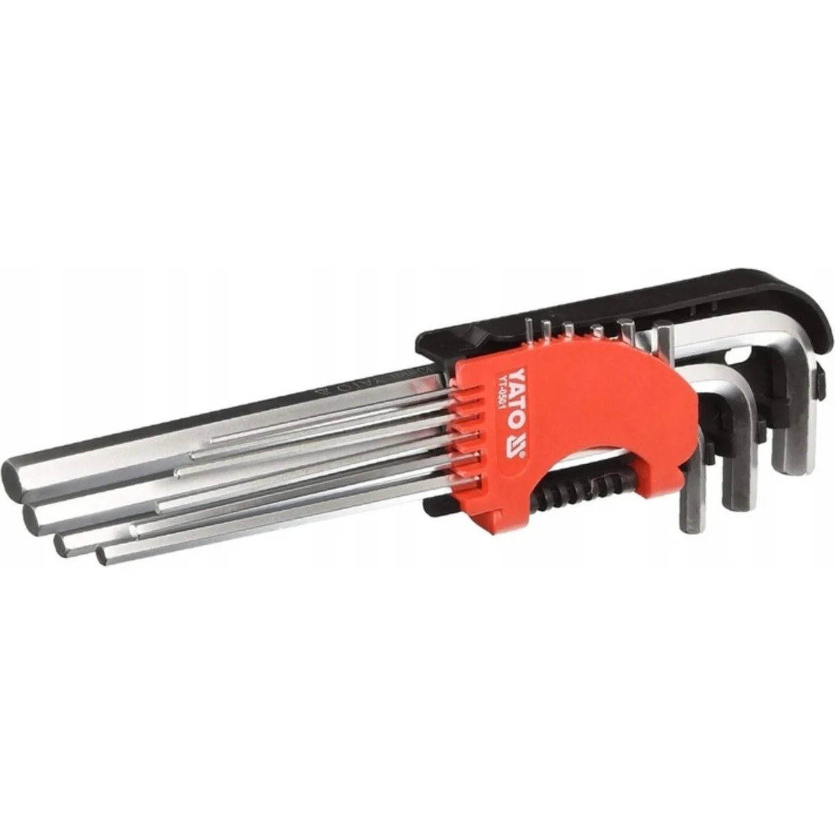 Набор торцовых удлиненных ключей YATO HEX 1,5-10 мм, CV, 9 предметов, кассета YT-0501 применяются для работы с крепежом внутреннего шестигранного рабочего профиля. Ключи позволяют прилагать высокие крутящие моменты при использовании длинной части инструмента в качестве рукоятки. Инструменты изготовлены из легированной хромованадиевой стали, по технологии, позволяющей применять высокие нагрузки. Инструменты станут прекрасным помощником как в профессиональной деятельности, так и в быту. Для удобства использования и транспортировки набор поставляется в пластиковой кассете.