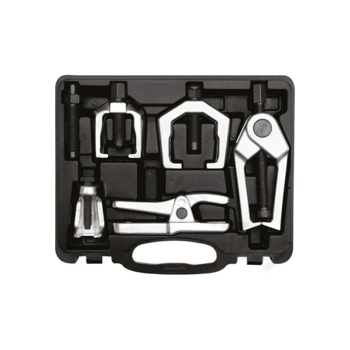 Набор съемников шаровых опор и рулевых наконечников YATO YT-06157 включает в себя 6 предметов, предназначенных для быстрого и комфортного снятия рулевого рычага, шаровых опор или рулевой тяги. Все инструменты из набора выполнены из высококачественной стали, прошедшей термообработку и обладающей большой прочностью и износостойкостью.